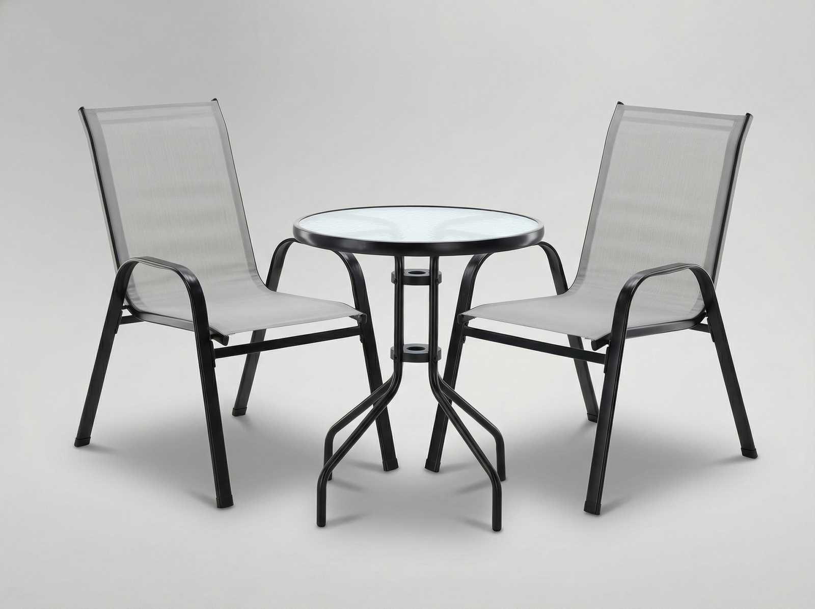 ZESTAW MEBLI BALKONOWYCH – 2 KRZESŁA + STOLIK – SZARY