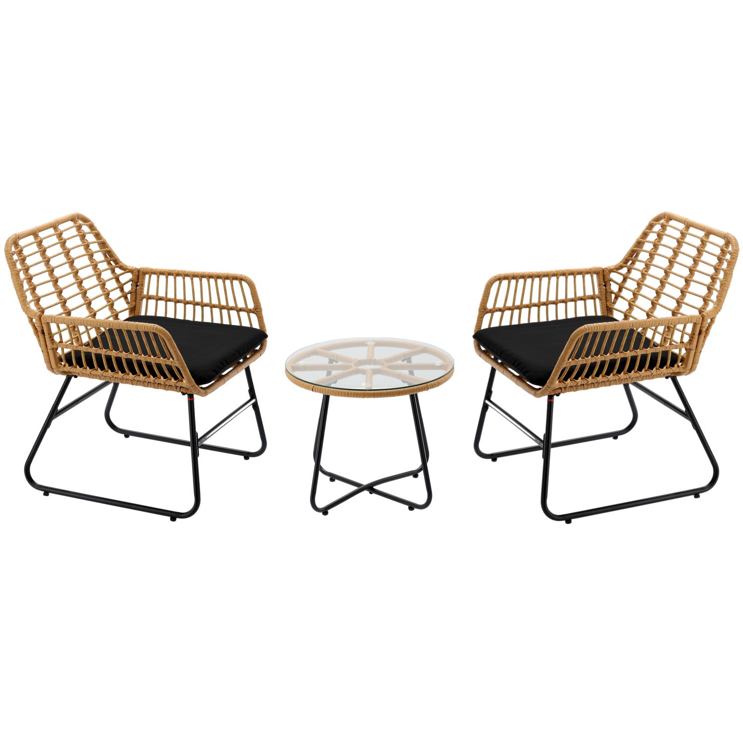 ZESTAW MEBLI OGRODOWYCH (2 KRZESŁA, STOLIK) – BRĄZOWY, PODUSZKI – CZARNY