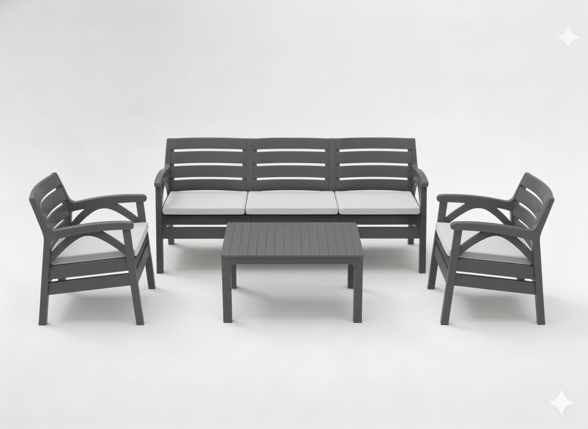 ZESTAW MEBLI OGRODOWYCH ANTRACYTOWYCH „SANTANA” (2x FOTEL, ŁAWKA 3os.)