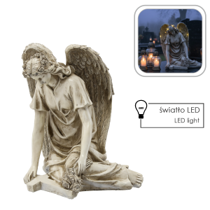 FIGURA ANIOŁ SIEDZĄCY Z KRZYŻEM LED – BEŻOWA 34 X 26,5 X 38 CM *8721
