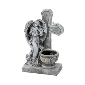 FIGURA ANIOŁ STOJĄCY Z KRZYŻEM I DONICĄ 21,5 X 14 X 35,5 CM *8813