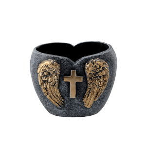 DONICZKA CMENTARNA CEMENTOWA – SERCE CIEMNO SZARO – ZŁOTA 20 X 15 X 16,5 CM *8929