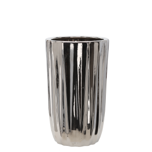 OSŁONKA CERAMICZNA NA DONICZKĘ 39,5 x 39,5 x 48,5 CM SREBRNA PRĄŻKI *3444