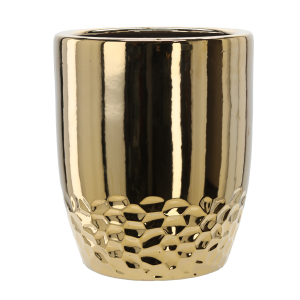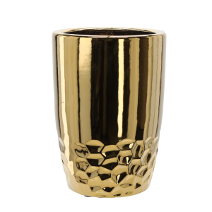 OSŁONKA CERAMICZNA NA DONICZKĘ 25,5 x 25,5 x 34,5 CM ZŁOTA PLASTER MIODU *3499