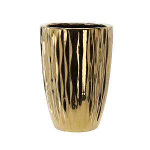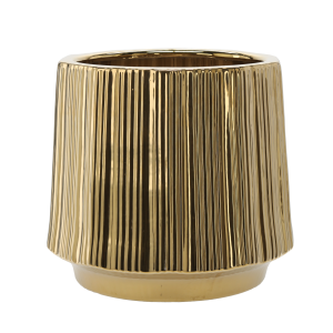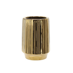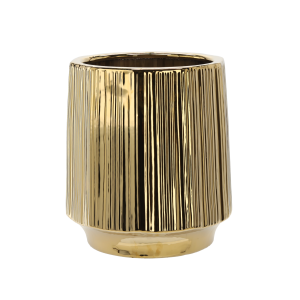 OSŁONKA CERAMICZNA NA DONICZKĘ 22 x 22 x 32,5 CM ZŁOTA PRĄŻKOWANA *3550