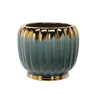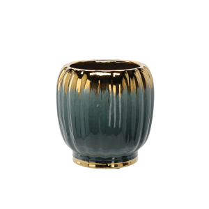 OSŁONKA CERAMICZNA NA DONICZKĘ 28 x 28 x 28,5 CM ZŁOTO-ZIELONA *3635