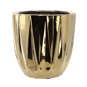 OSŁONKA CERAMICZNA NA DONICZKĘ 44 x 44 x 40 CM ZŁOTA PRĄŻKOWANA *3536