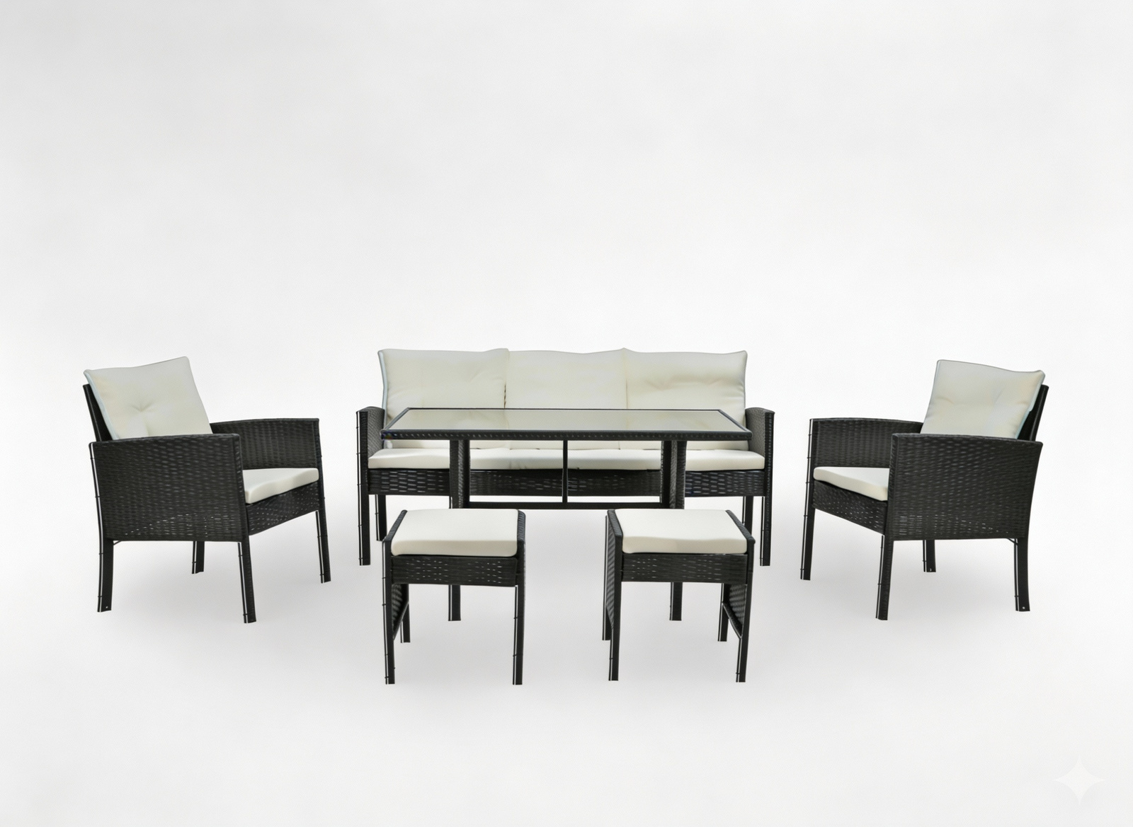 Elegancki zestaw mebli rattanowych, który doskonale sprawdzi się w ogrodzie, na tarasie lub balkonie. Konstrukcja wykonana ze stali malowanej proszkowo zapewnia trwałość oraz ochronę przed korozją. Meble charakteryzują się wysoką odpornością na warunki atmosferyczne oraz nowoczesnym designem. Poduszki o odpowiedniej grubości gwarantują komfort użytkowania, a hartowane szkło na blacie stolika dodaje całości elegancji.