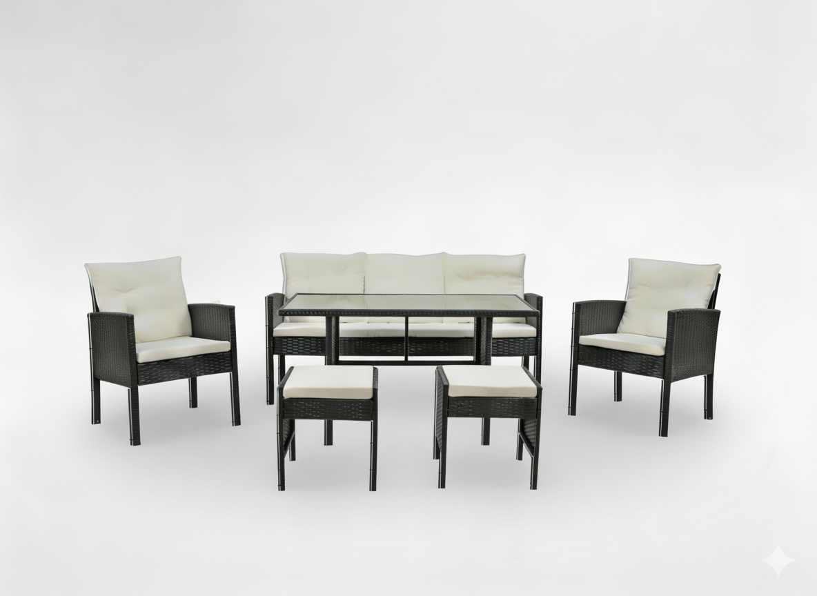 🪑 ZESTAW MEBLI RATTANOWYCH „VADUZ” – KOMPLET 6 ELEMENTÓW