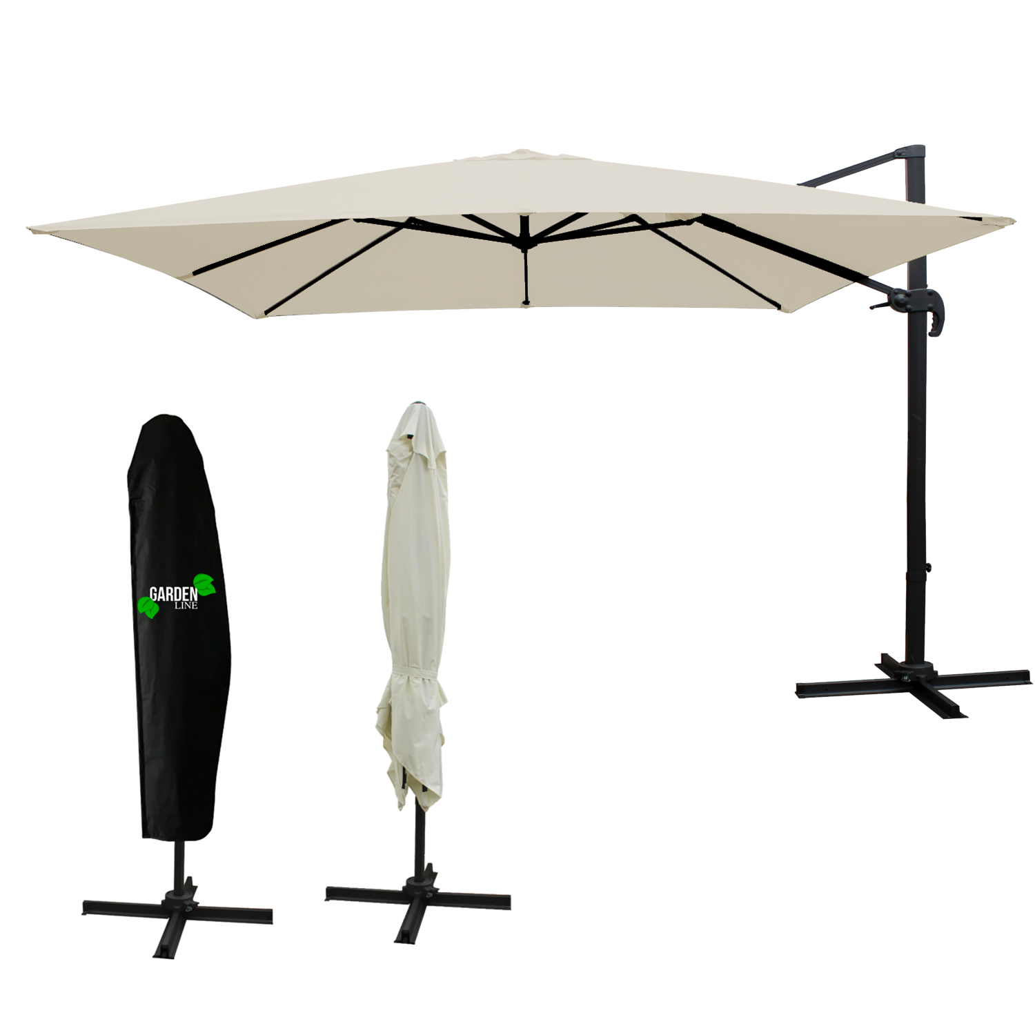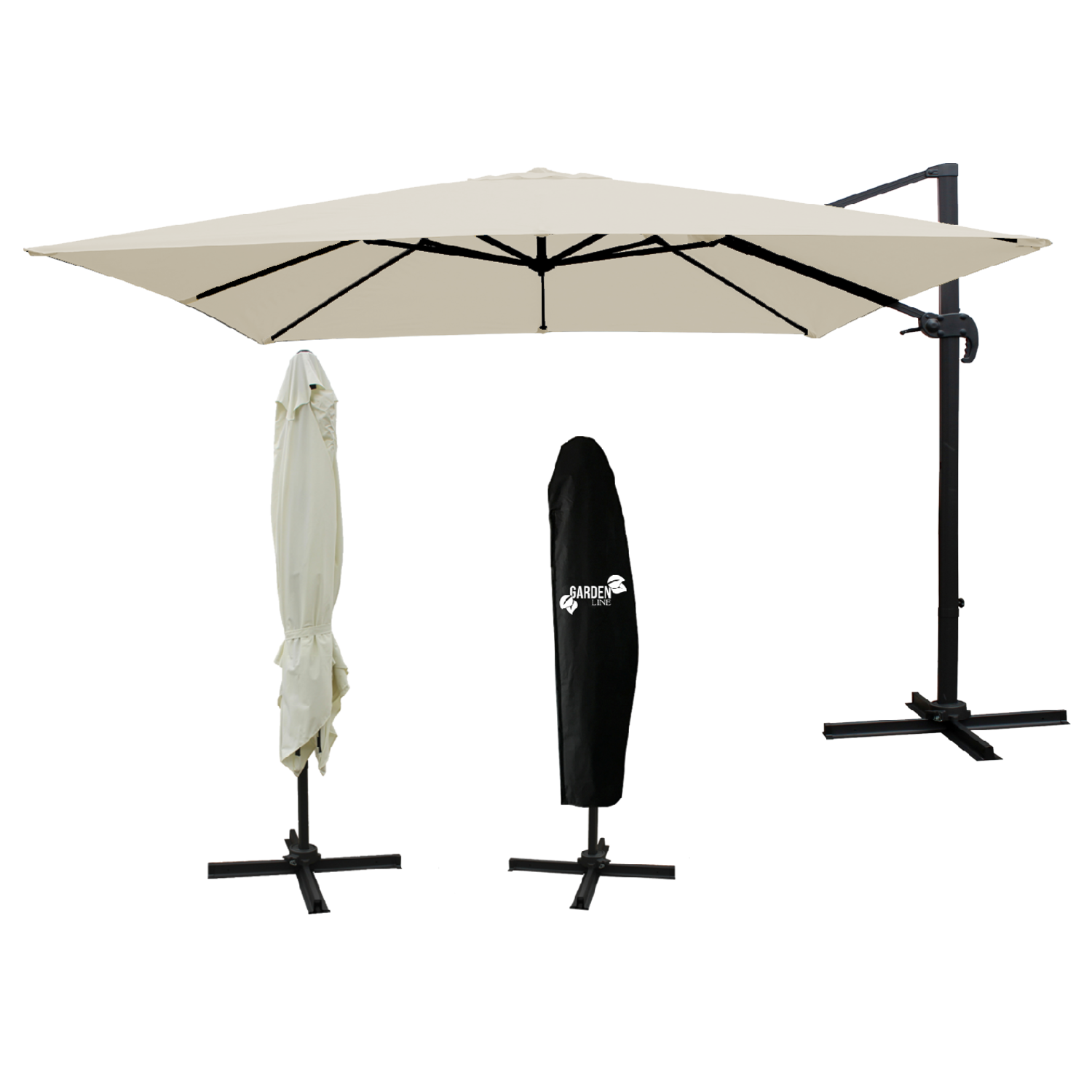 PARASOL OGRODOWY „MINI ROMA” 2,5 × 2,5 M BEŻOWY Z POKROWCEM