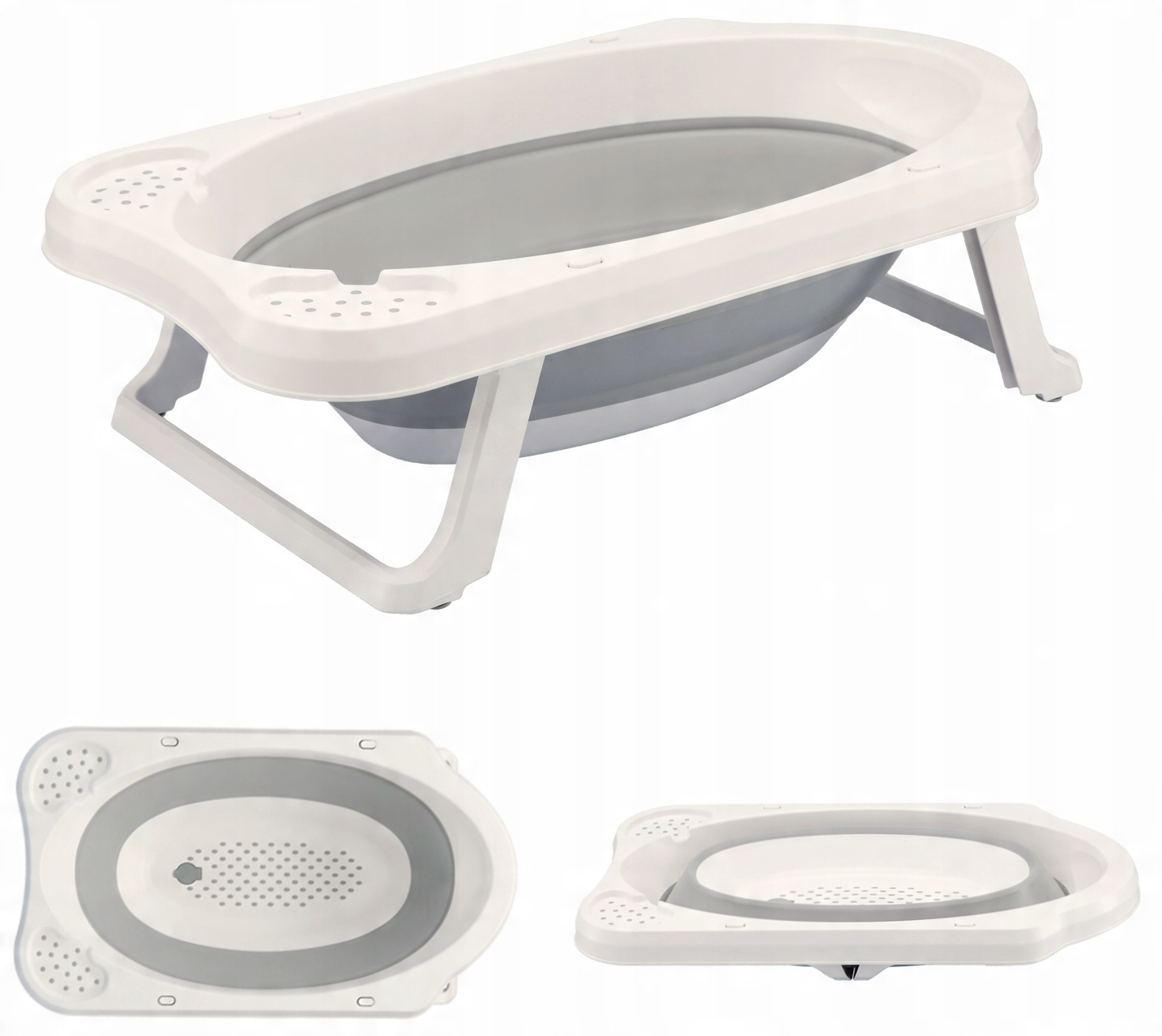 Składana wanienka o pojemności 33 litrów i wymiarach 45,5 × 80 × 24 cm. Praktyczne rozwiązanie do kąpieli, łatwa do przechowywania dzięki składanej konstrukcji.