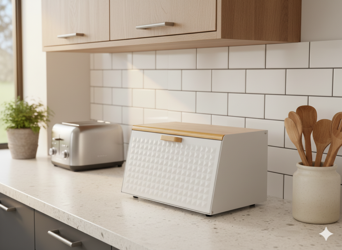 Bo to nie jest kolejny zwykły pojemnik na pieczywo — to wyjątkowy, elegancki element wystroju ⬜, który natychmiast podnosi estetykę każdej kuchni ✨.