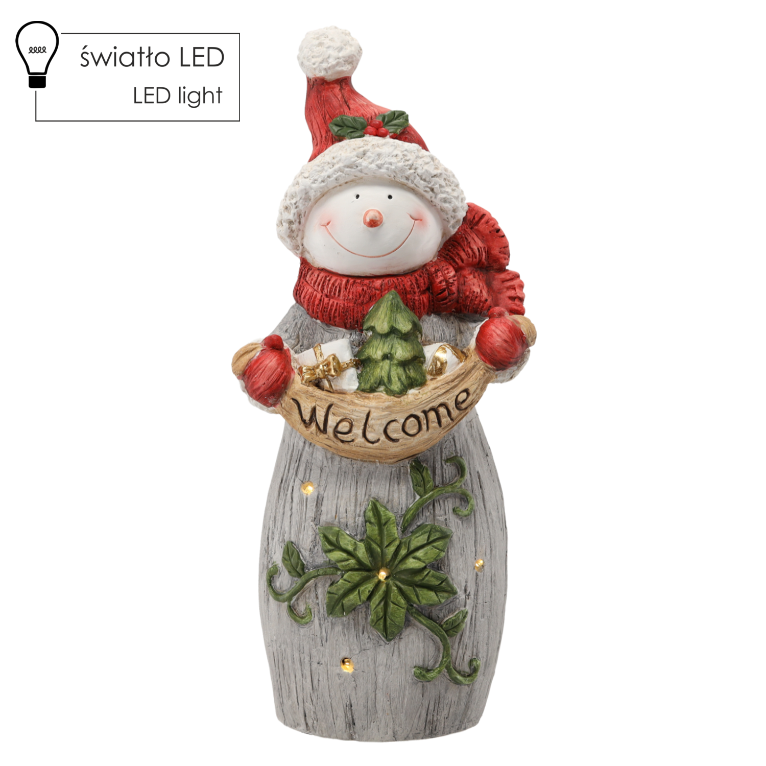 Figurka Bożonarodzeniowa Bałwan z Napisem „WELCOME” LED