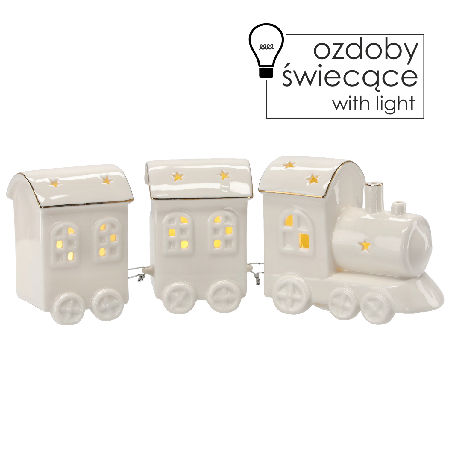 FIGURKA BOŻONAR. – CIUCHCIA Z WAGONAMI BIAŁA 28.8 x 6.6 x 10.5 CM LED opak=1szt *1207