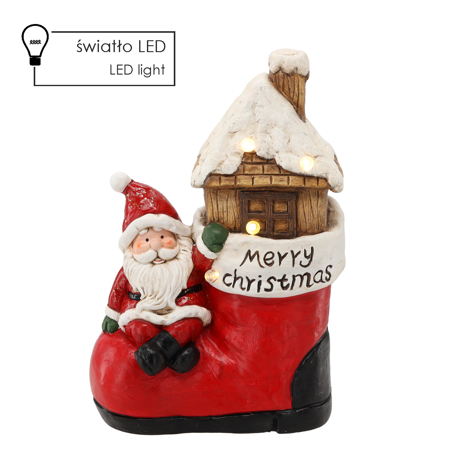 Figurka Bożonarodzeniowa Mikołaj „Merry Christmas” LED