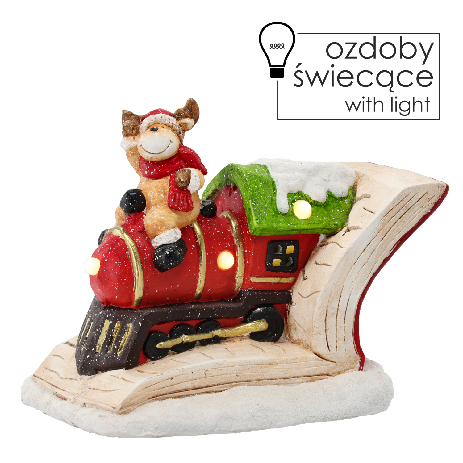 FIGURKA BOŻONAR. – RENIFER W KSIĄŻCE NA CIUCHCI 27 CM LED *1160