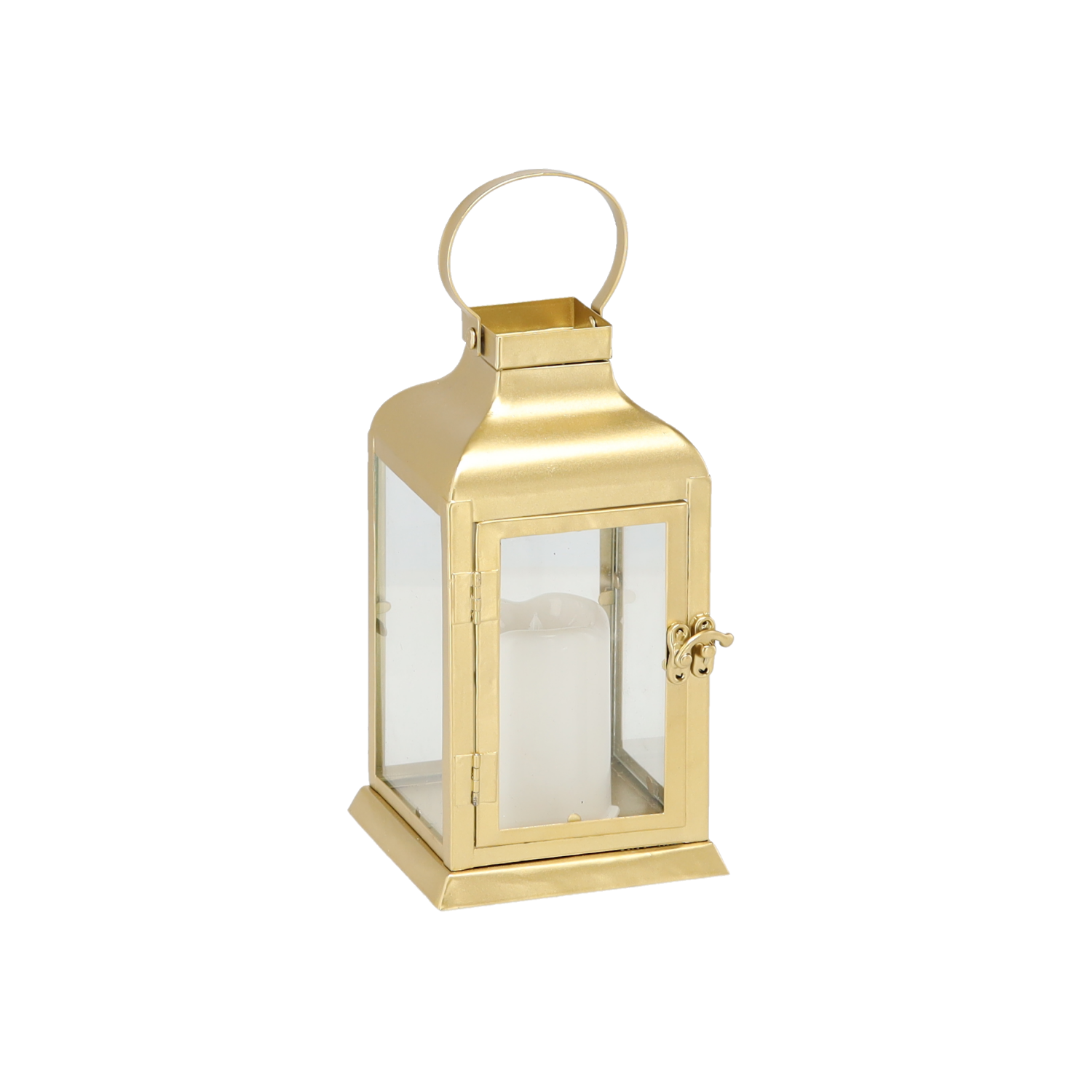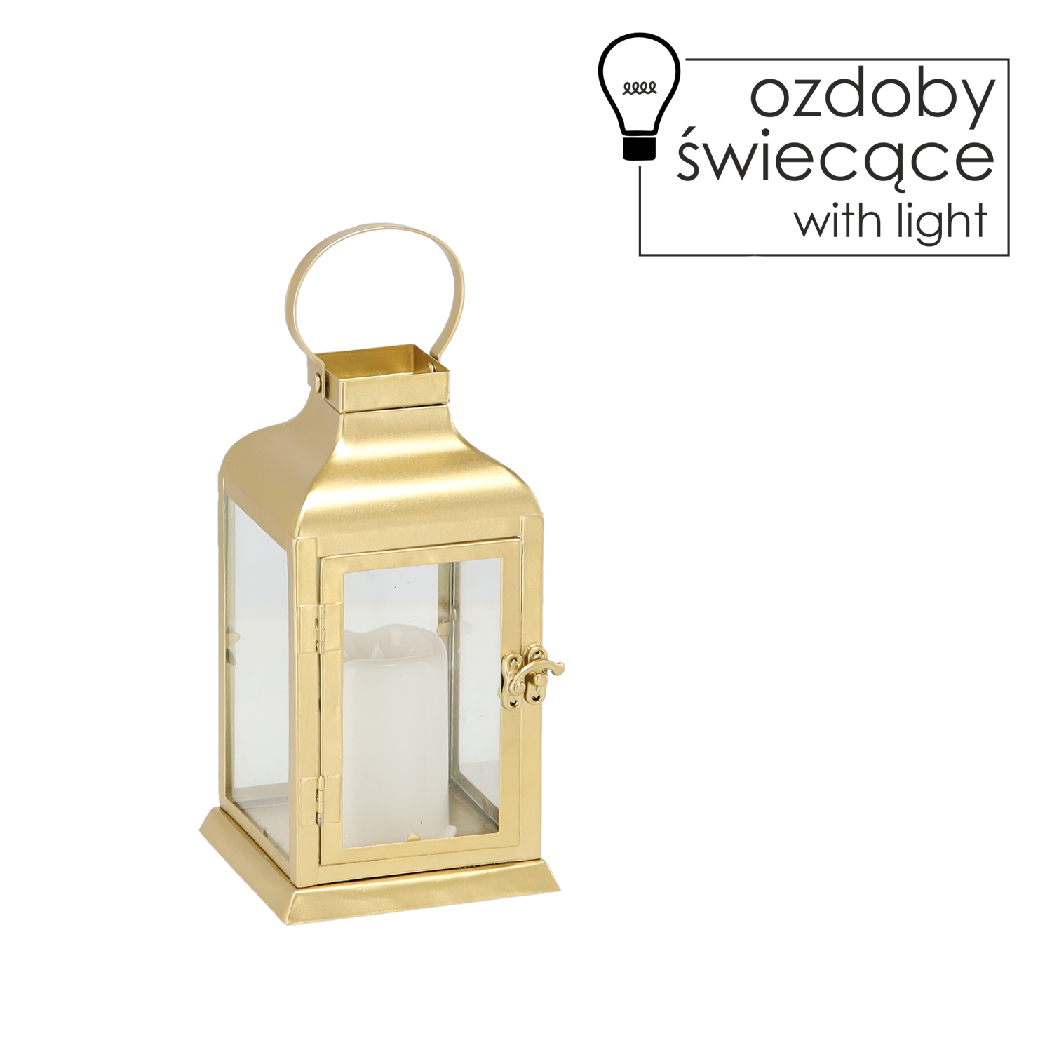Świąteczny lampion metalowy złoty, ze świeczką led