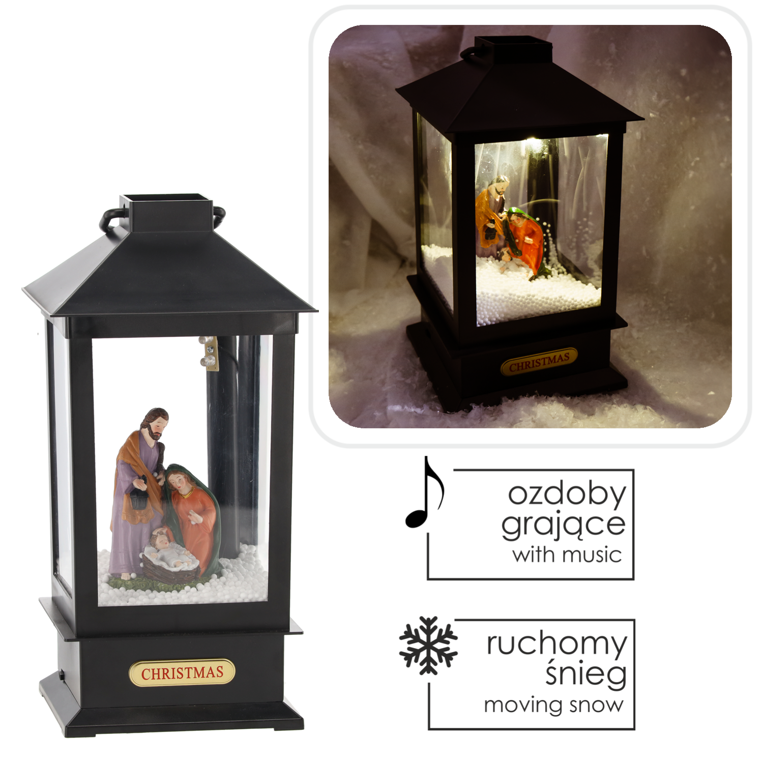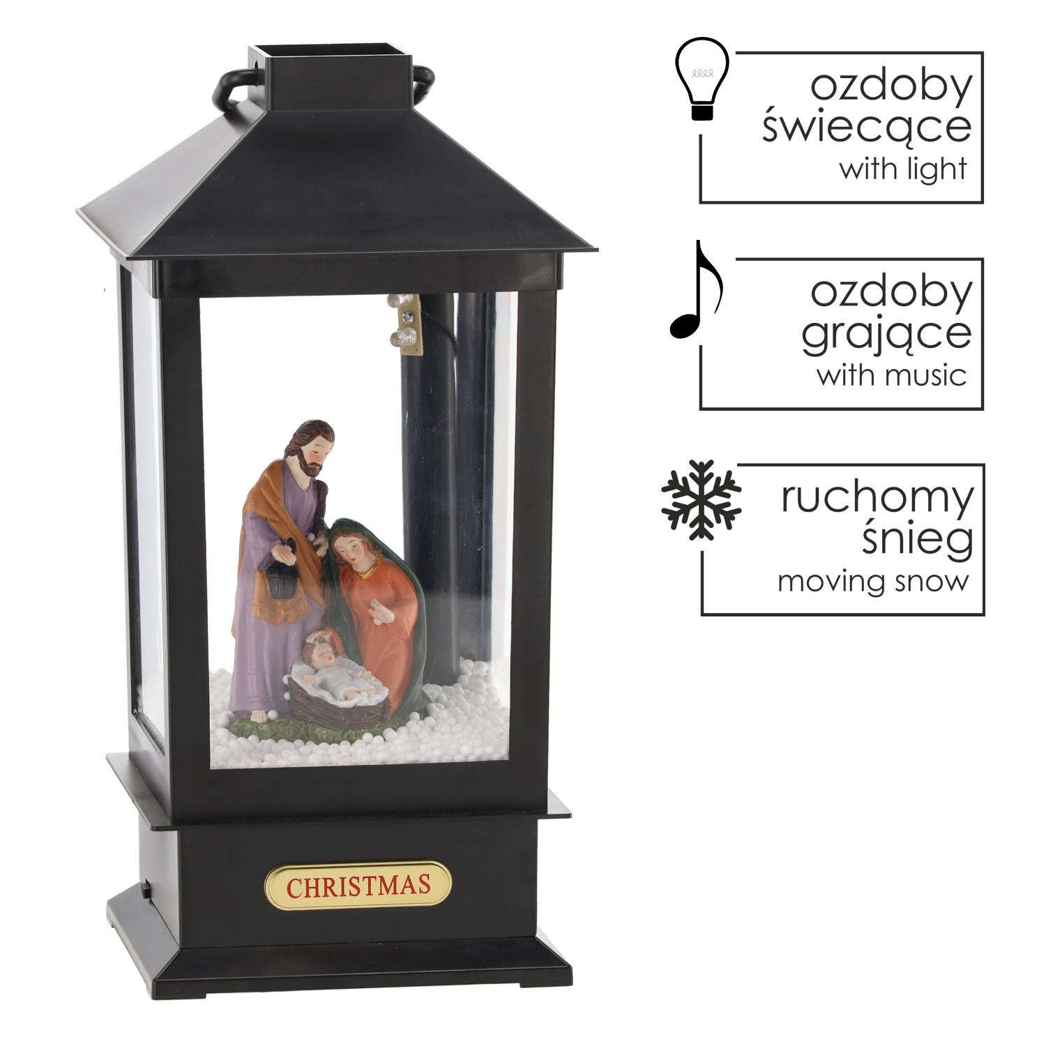 ŚWIĄTECZNY LAMPION 13 x 13 x 30 CM Z WKŁADEM LED POZYTYWKA – CZARNY – ŚWIĘTA RODZINA *9386