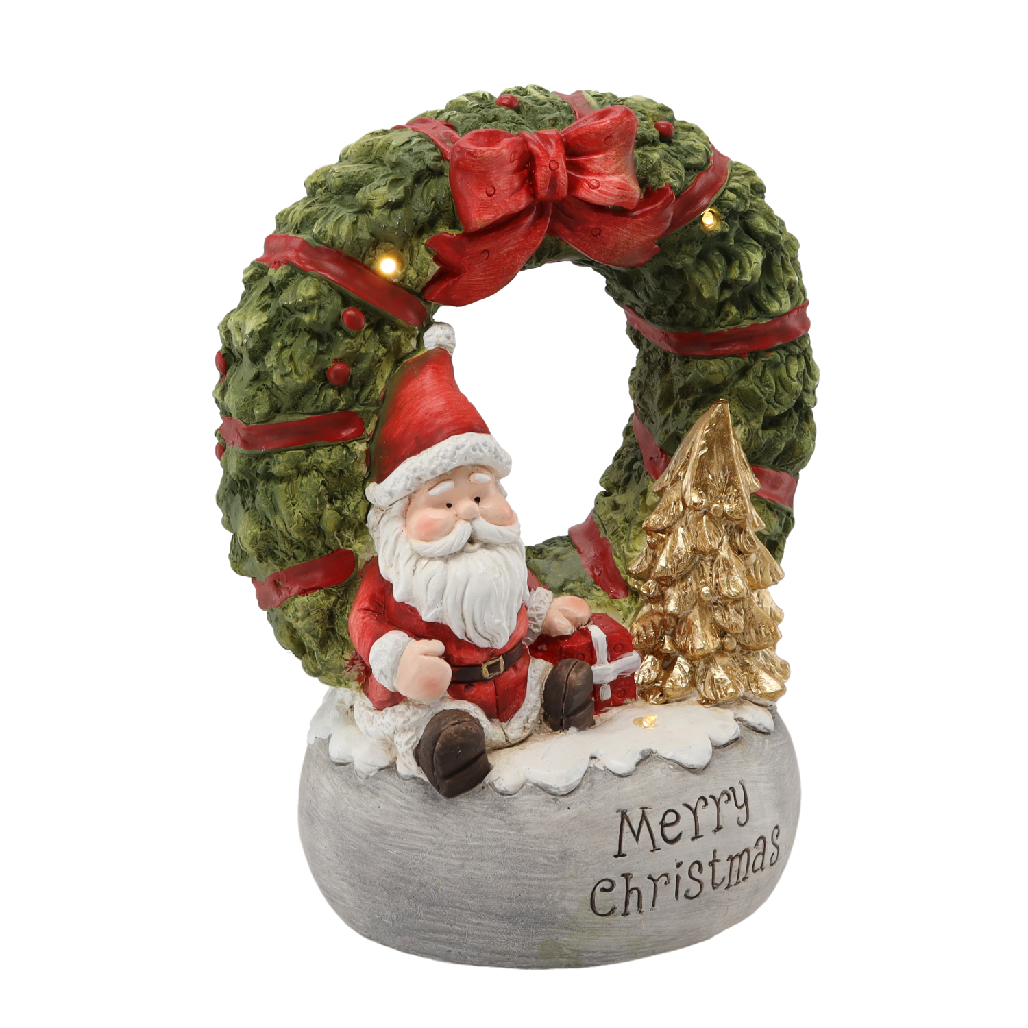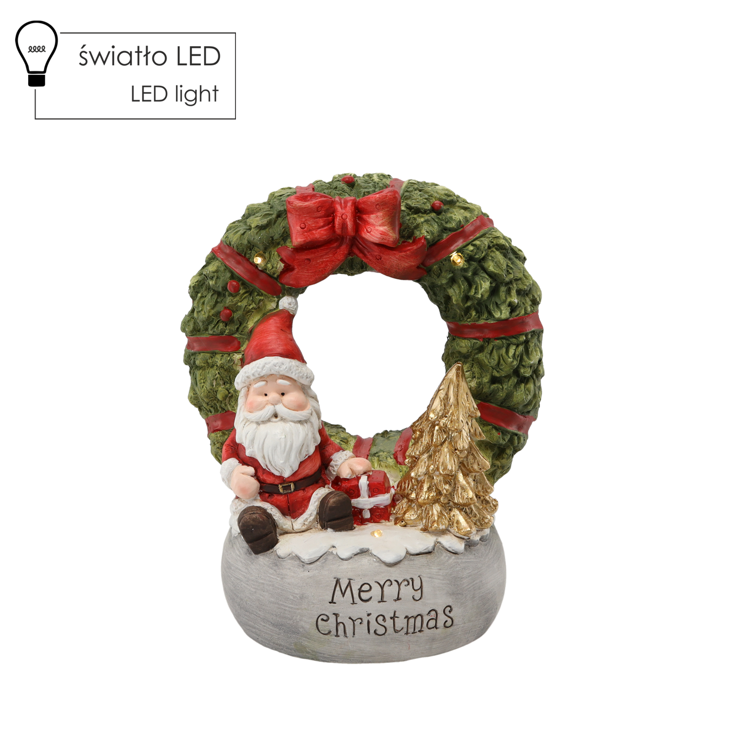 Figura Bożonarodzeniowa Wieniec z Mikołajem „MERRY CHRISTMAS” LED