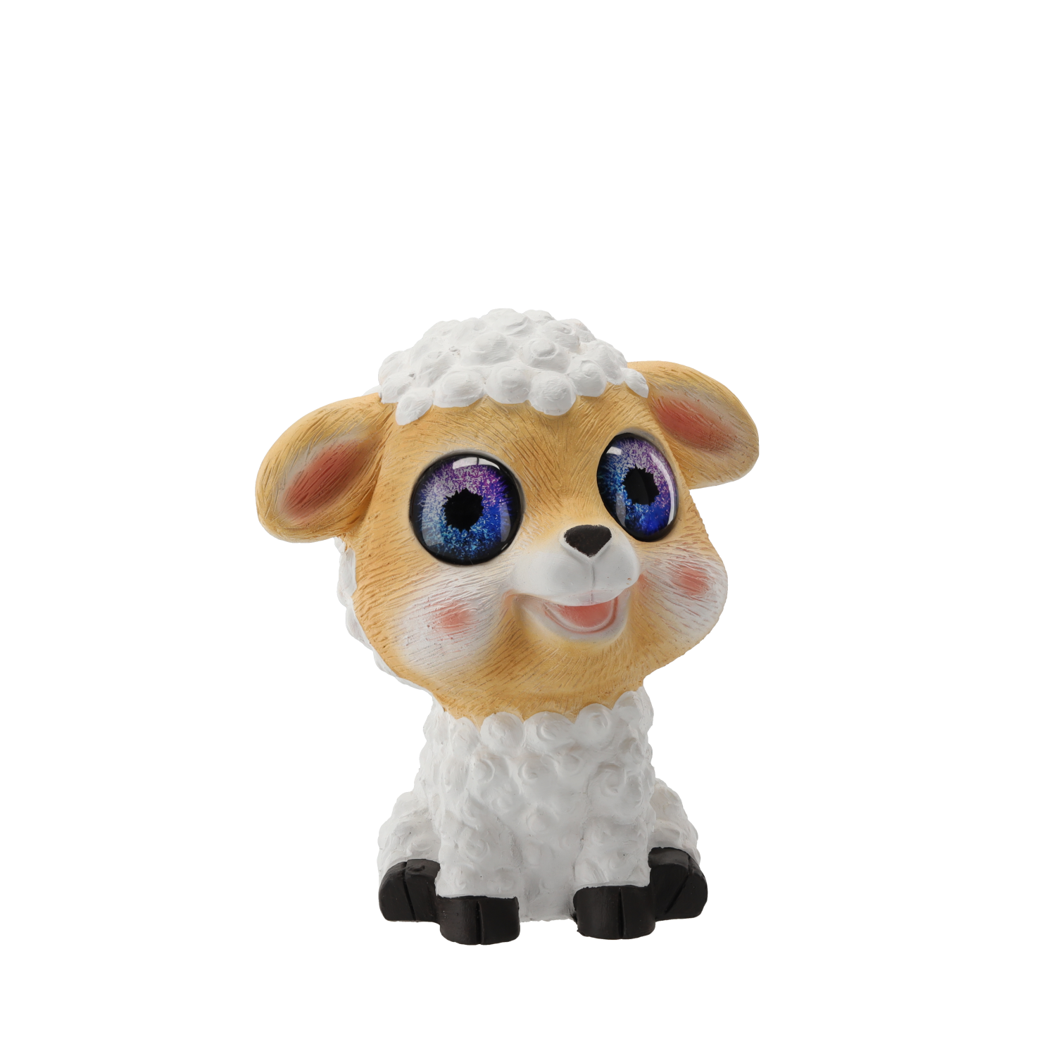 Dekoracyjna figurka owcy z dwoma ciepłobiałymi diodami LED umieszczonymi w oczach. Zasilana energią słoneczną (akumulator 1.2V NiMH 300mAh). Wykonana z trwałego kompozytu magnezu i włókna szklanego (MGO),
