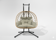 FOTEL WISZĄCY PODWÓJNY LUVO BRĄZOWY, PODUSZKA – JASNY SZARY, RAMA – CZARNA 🪑