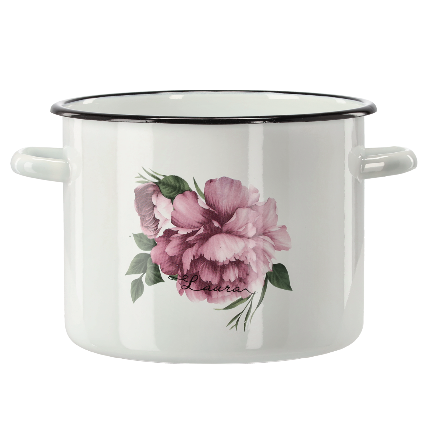 GARNEK EMALIOWANY 5,5 L 22 CM BIAŁY PIWONIA LAURA *9242