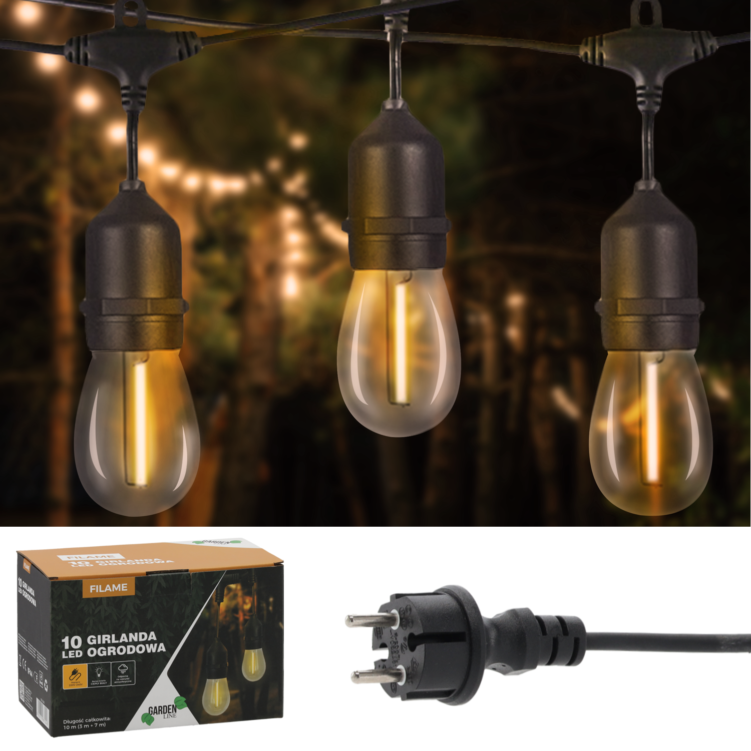 Stwórz magiczną atmosferę w swoim ogrodzie, na tarasie czy balkonie dzięki girlandzie ogrodowej FILAME z 10 LED-owymi żarówkami emitującymi ciepłe białe światło. Ta wysokonapięciowa girlanda jest idealnym dodatkiem na letnie wieczory, dodając uroku i nastroju każdemu miejscu. Jej nowoczesny i klasyczny design sprawia, że doskonale komponuje się z różnymi stylami wnętrz.