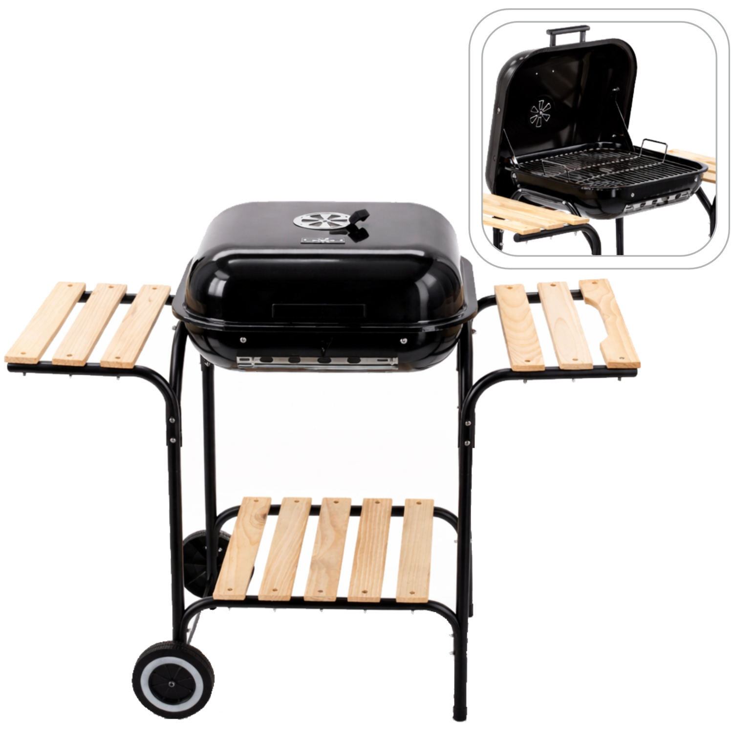 Dzięki solidnej konstrukcji, wygodnym półkom bocznym i mobilnym kółkom z łatwością zorganizujesz grillowanie w ogrodzie, na tarasie czy działce. To nie tylko sprzęt – to Twój letni towarzysz kulinarnych przygód! 🌞
