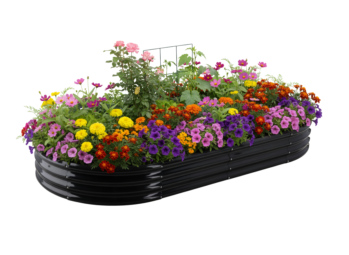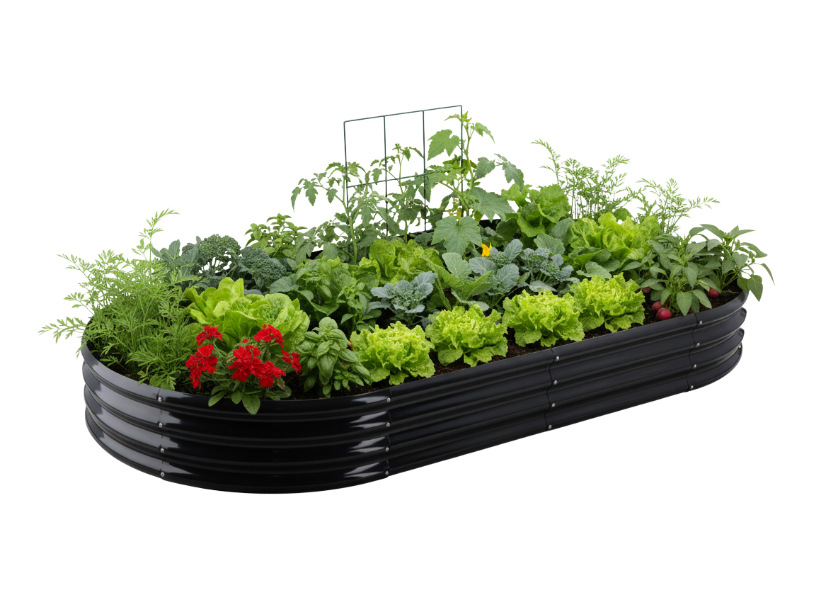 Ta owalna grządka warzywno-kwiatowa łączy w sobie nowoczesny styl, trwałość na lata oraz wysoką funkcjonalność, której potrzebuje każdy ogrodnik – zarówno początkujący, jak i doświadczony 🌿. Dzięki odpowiedniej wysokości i solidnej konstrukcji uprawa staje się łatwiejsza, bardziej ergonomiczna i przyjemniejsza.