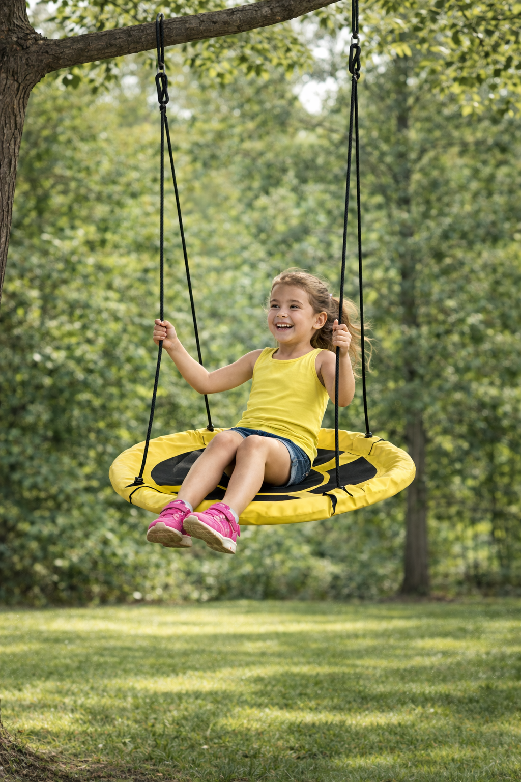Ta huśtawka to połączenie stylu, komfortu i świetnej zabawy! Żółty akcent ożywi każde miejsce, a solidne wykonanie zapewni bezpieczeństwo i trwałość przez wiele sezonów. ☀️