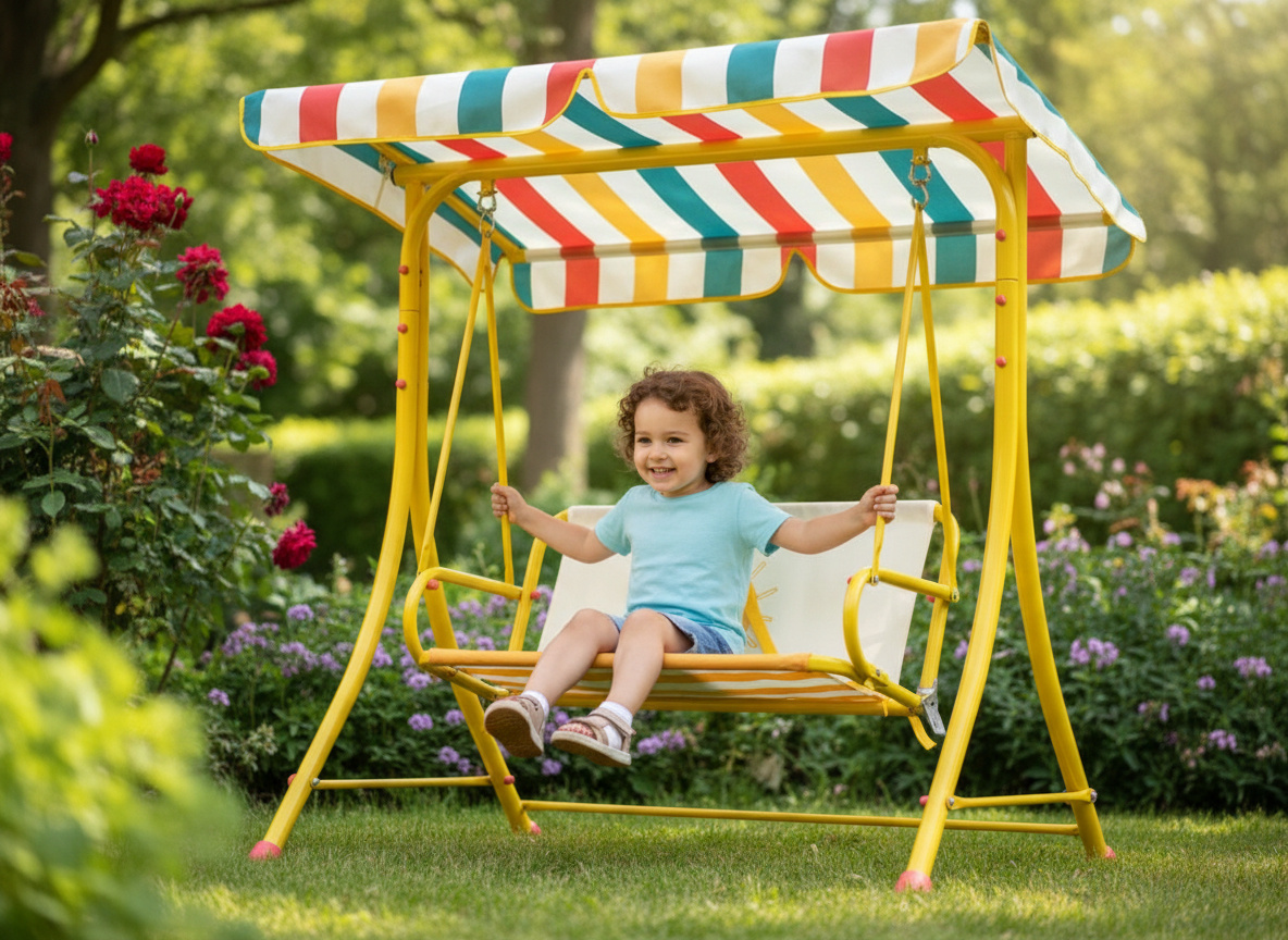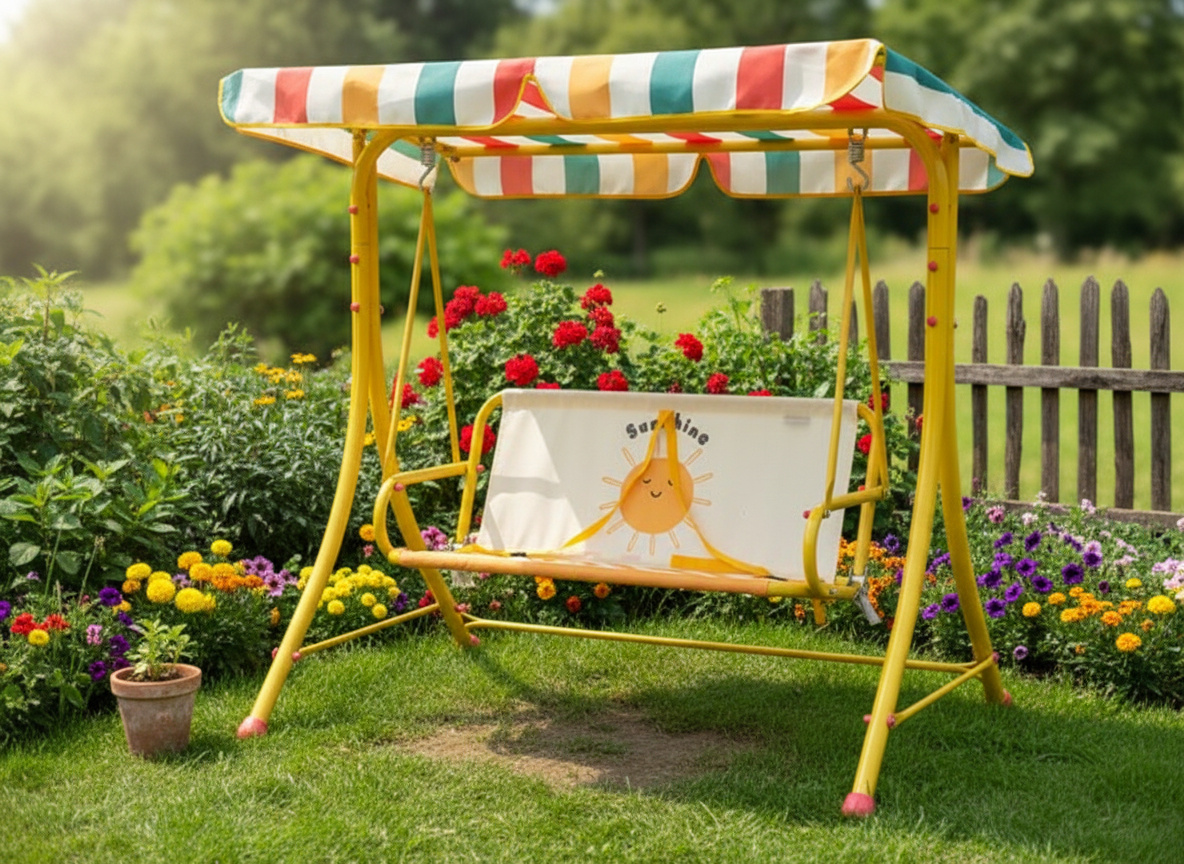 Huśtawka z daszkiem to świetne rozwiązanie na upalne dni – zapewnia cień, chroni przed promieniami UV, a przy tym gwarantuje mnóstwo radości z bujania. Idealna na prezent lub jako funkcjonalne uzupełnienie ogrodu! 🎁
