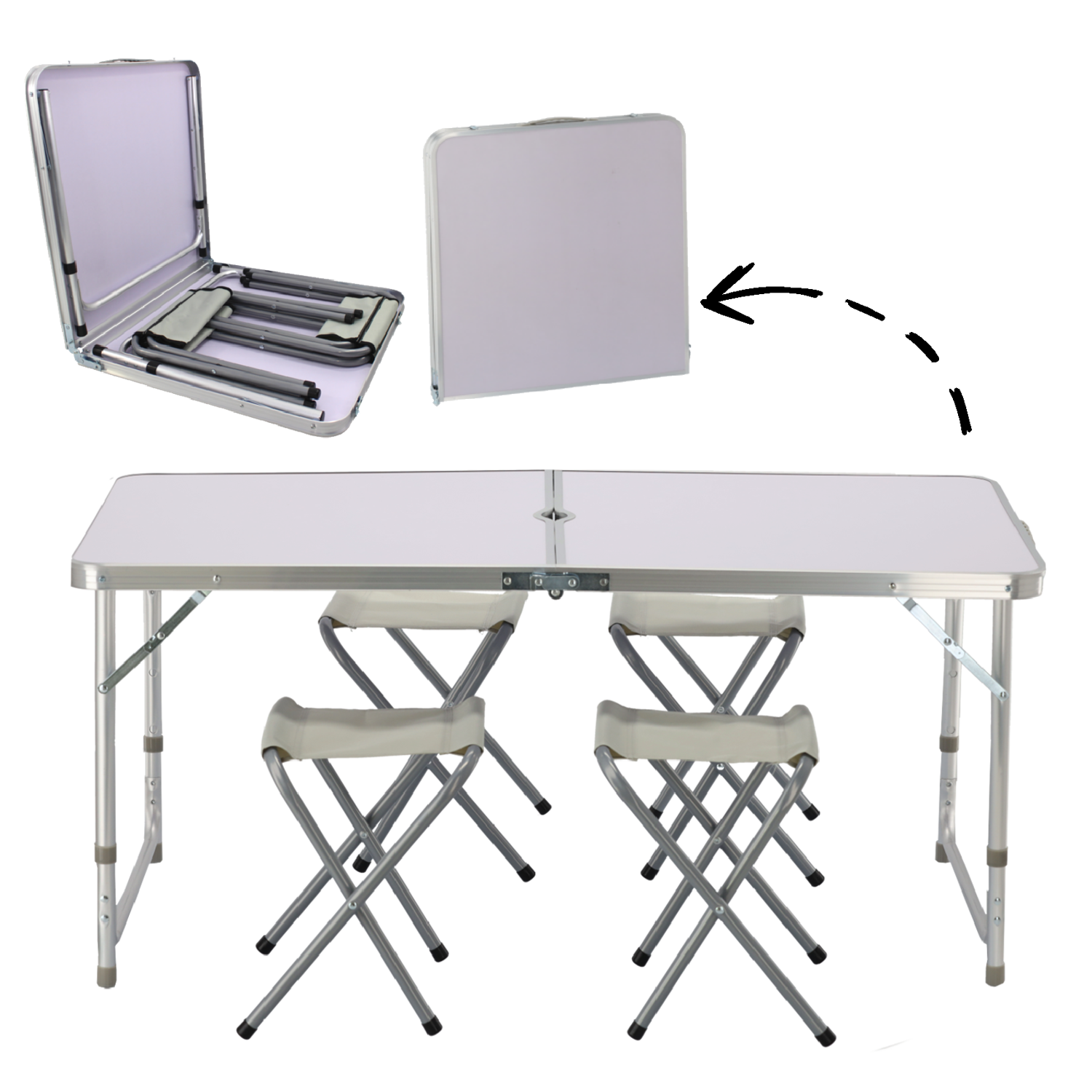 Idealne rozwiązanie dla miłośników wypoczynku na świeżym powietrzu! Ten kompletny zestaw turystyczny składa się z funkcjonalnego stołu i czterech składanych stołków – gotowy do zabrania w plener, na działkę, biwak czy rodzinny piknik 🏞️.