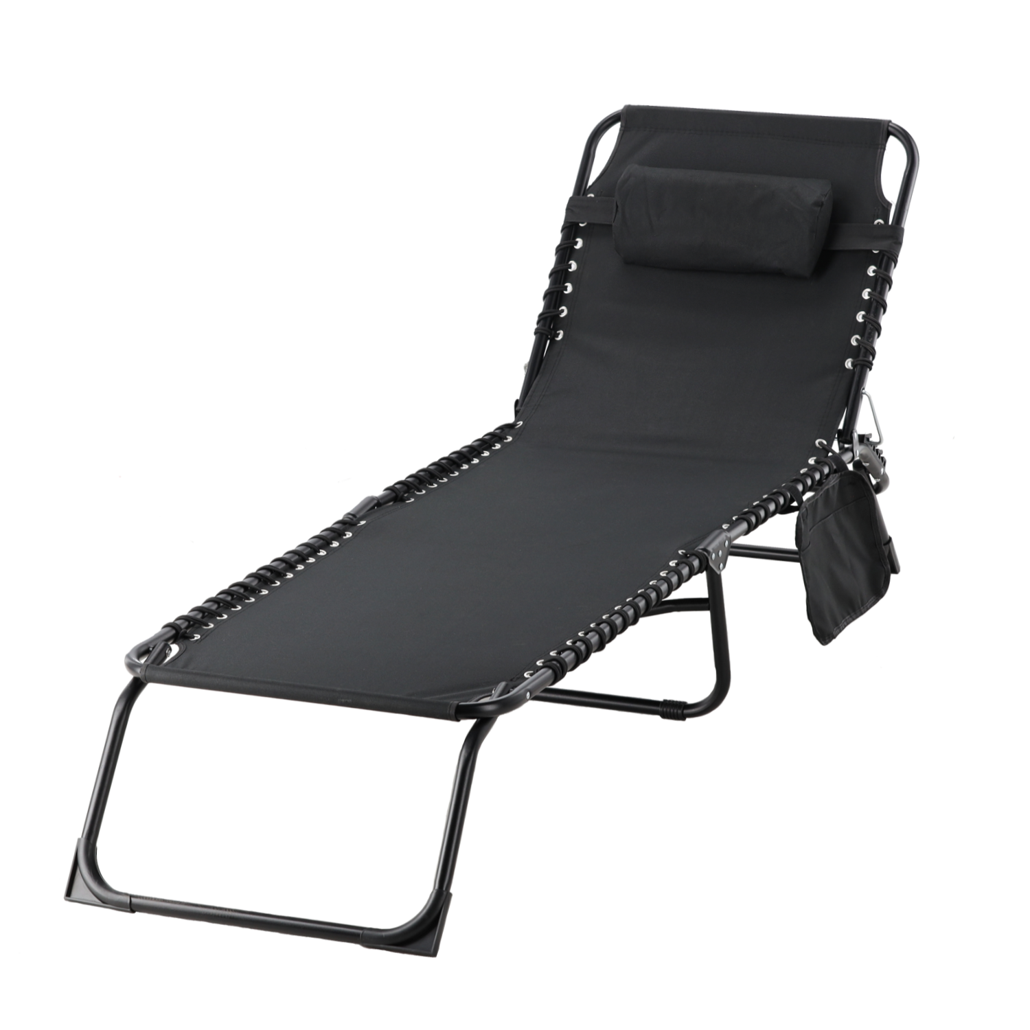 LEŻAK / ŁÓŻKO OGRODOWE SKŁADANE 190 x 58 x 30 CM Z KIESZONKĄ CZARNE 🛏️