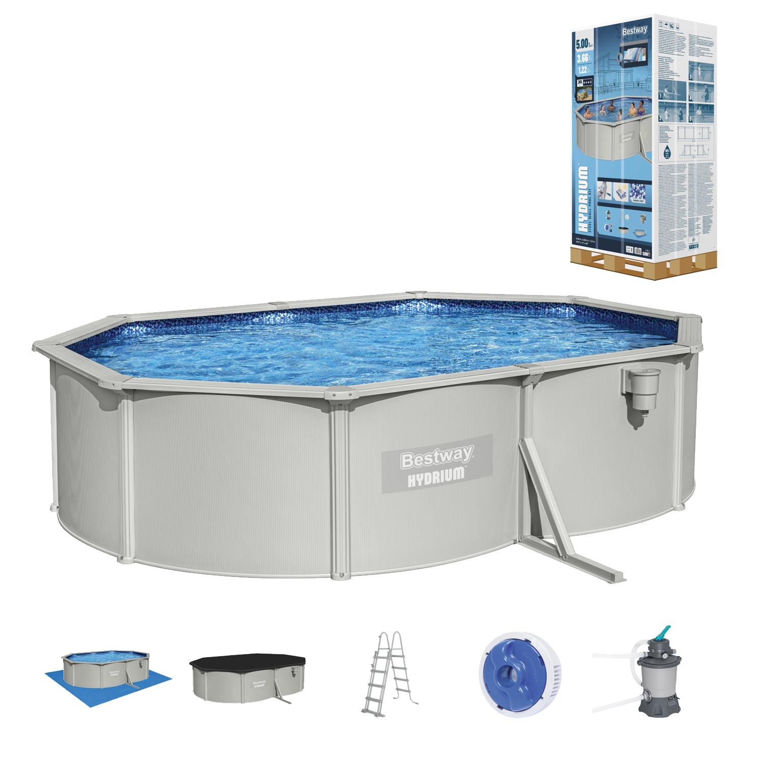 🏊 Basen stelażowy Bestway® Hydrium™ 5,0 x 3,66 x 1,22 m – solidny, całoroczny basen do ogrodu