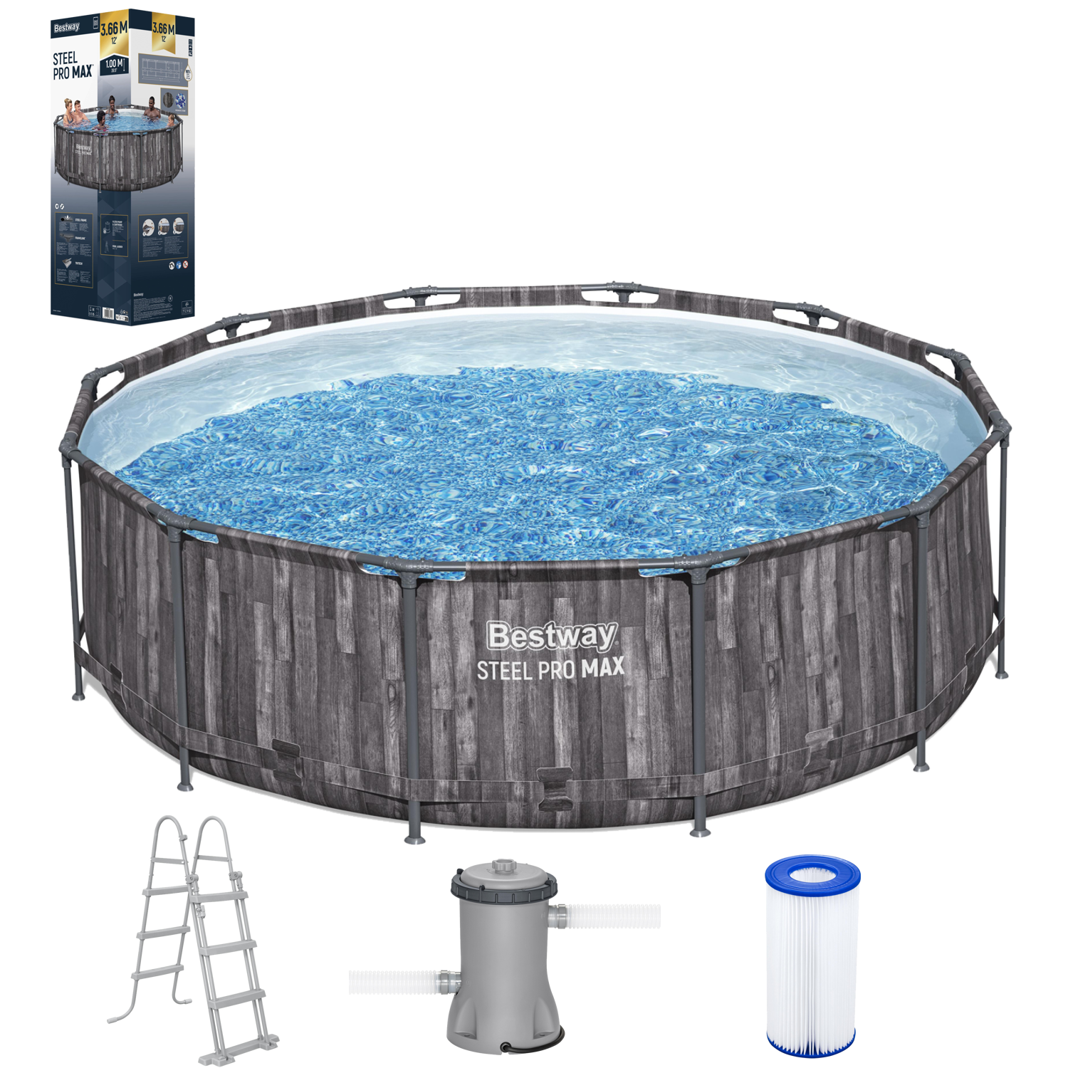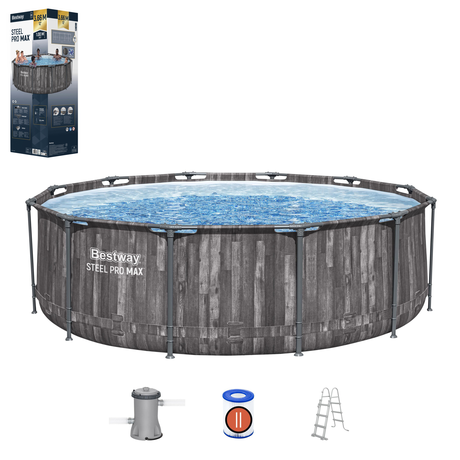 🏊 Bestway Steel Pro MAX™ 12’ x 39,5” (3,66 x 1,00 m) – Okrągły Basen Stelażowy z Pompą 🏊