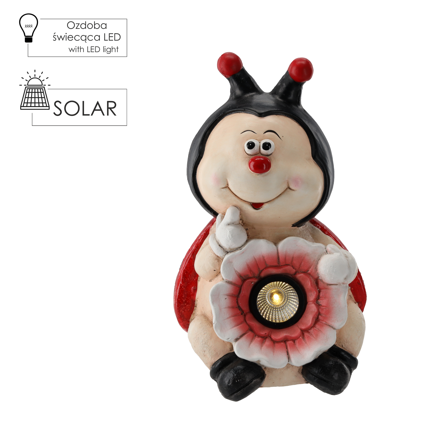 FIGURKA OGRODOWA – BIEDRONKA Z KWIATEM 22 x 20 x 36 CM LED *7287