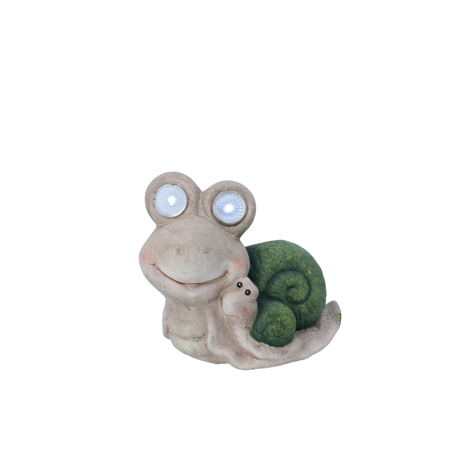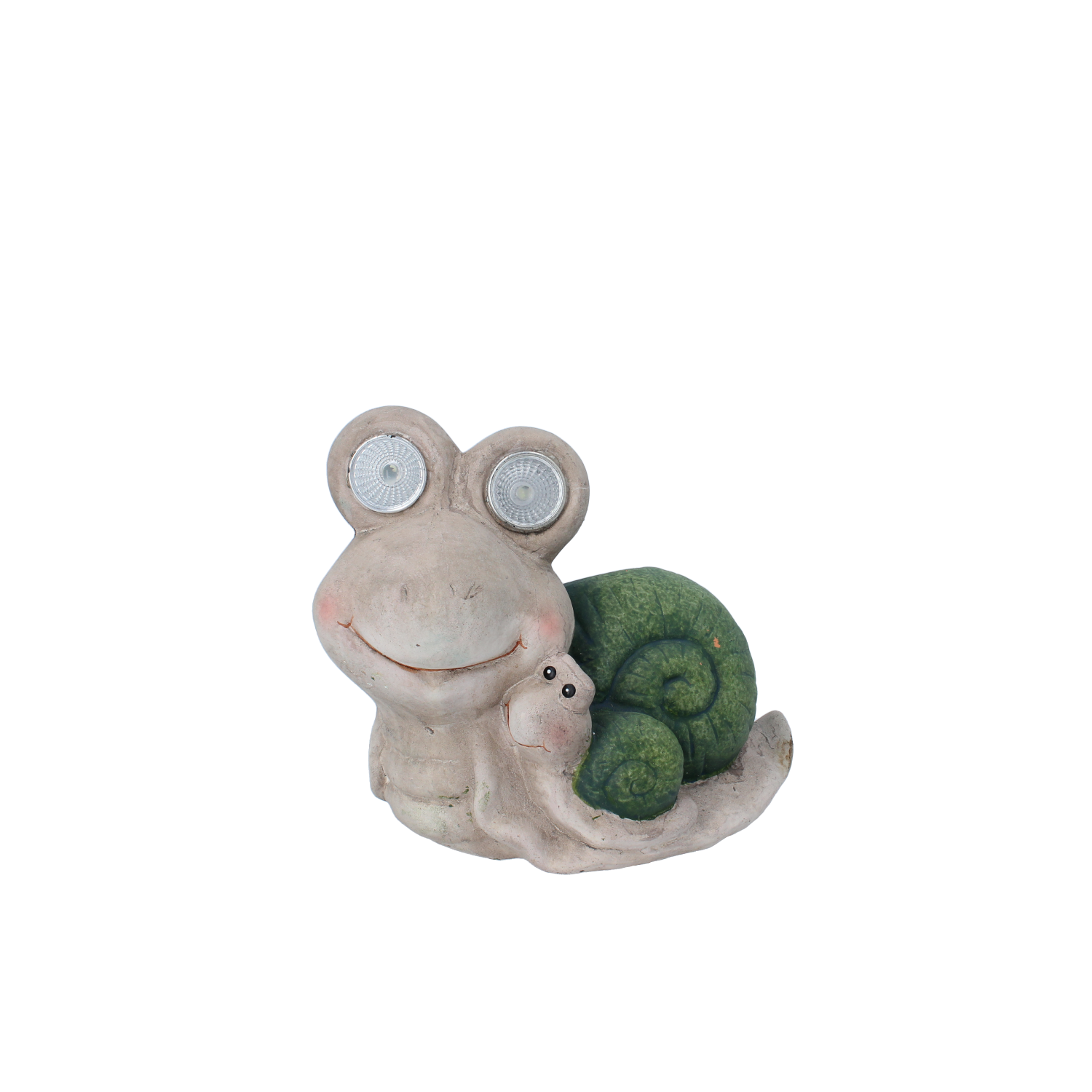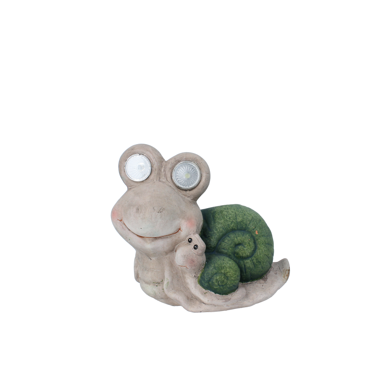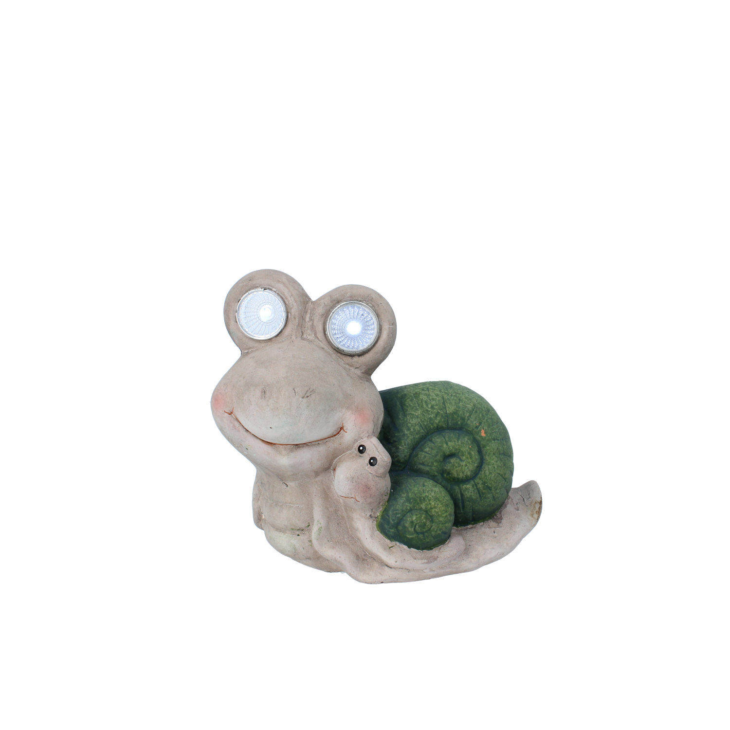 Figurka ślimaka ze świecącymi oczami, z mniejszym ślimakiem na sobie