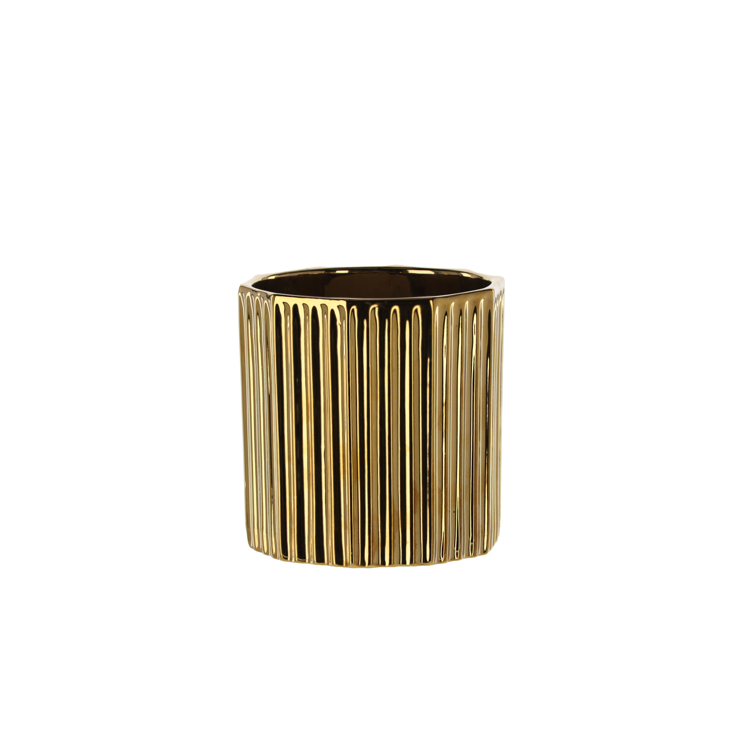 OSŁONKA CERAMICZNA NA DONICZKĘ 15 x 15 x 15 CM ZŁOTA PRĄŻKOWANA *5634