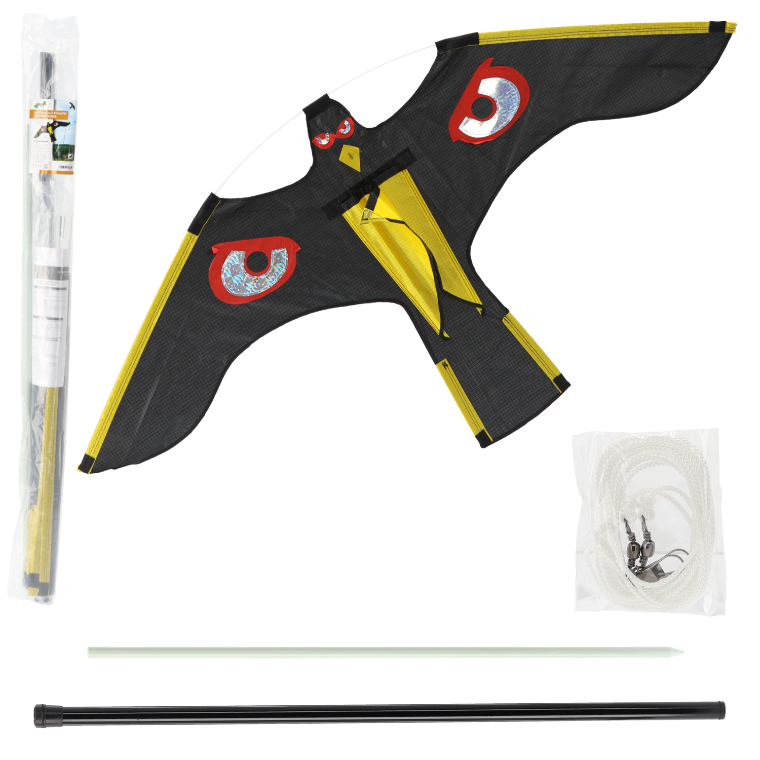Profesjonalny latawiec w kształcie sokoła przeznaczony do odstraszania ptaków w sadach, winnicach, na polach uprawnych oraz innych terenach wymagających ochrony przed szkodnikami. Dynamiczny wygląd oraz realistyczny lot sprawiają, że latawiec skutecznie imituje drapieżnego ptaka, odstraszając gołębie, szpaki, mewy i inne ptactwo.