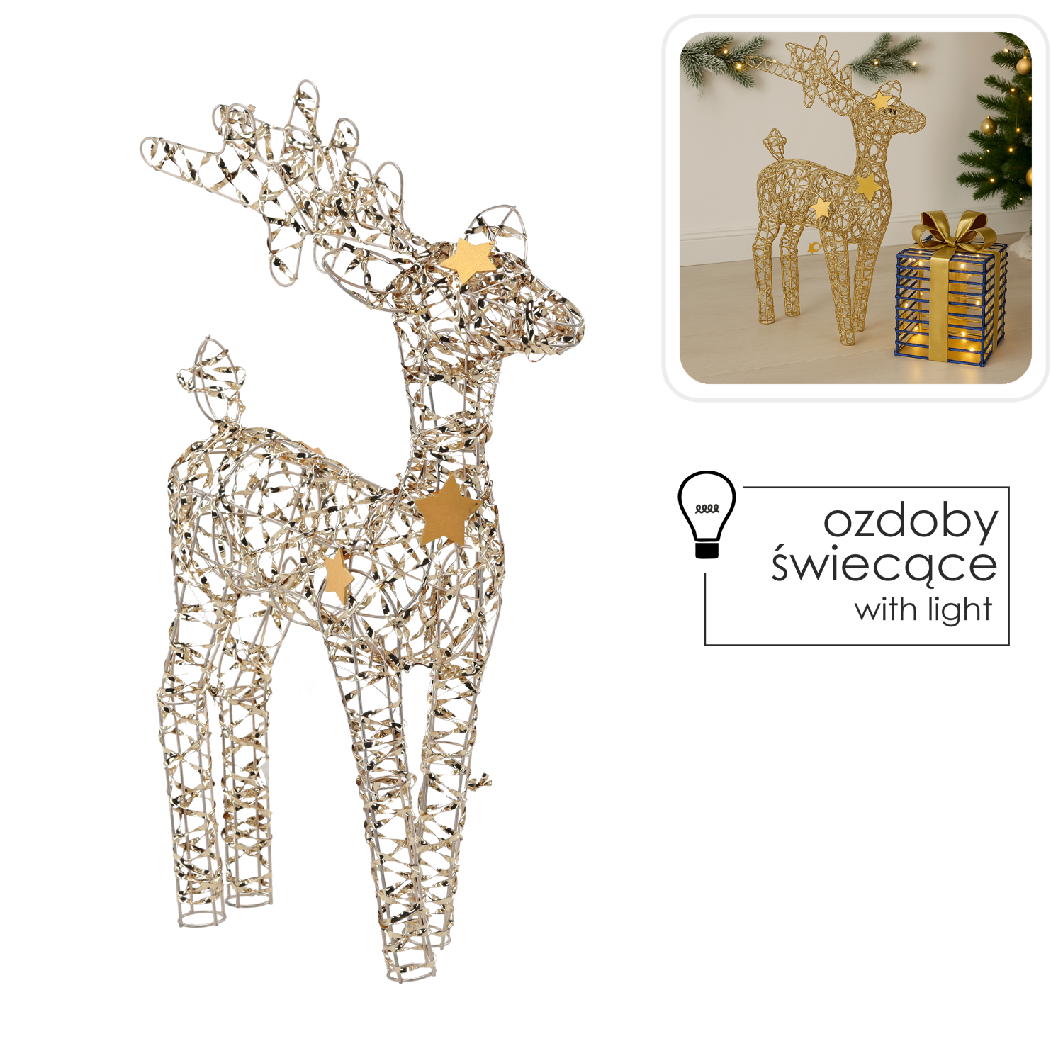 OZDOBA ŚWIĄTECZNA – RENIFER LED 50 CM SZAMPAŃSKIE ZŁOTO *6260