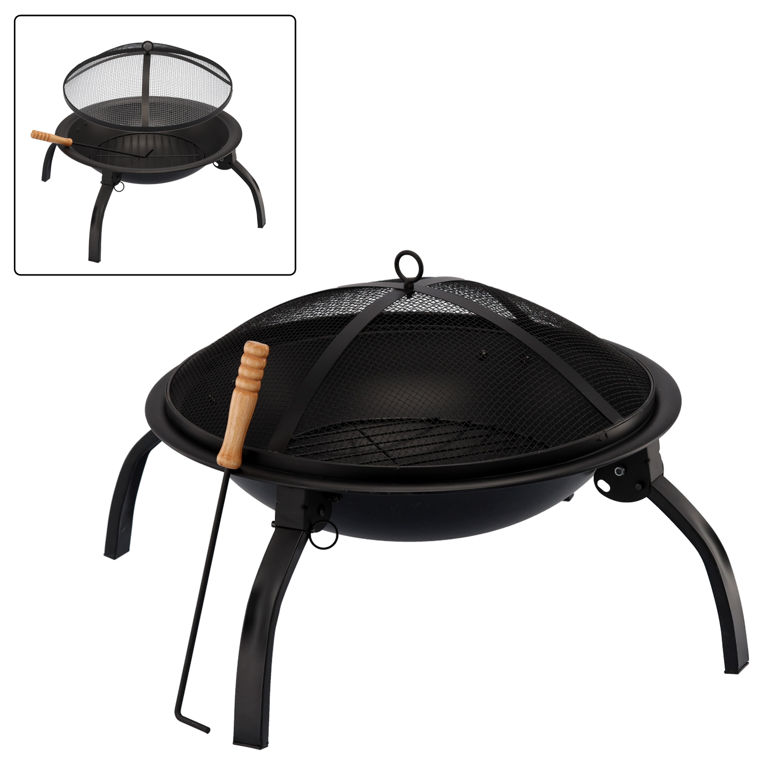 Dzięki żaroodpornej farbie i składanym nogom, palenisko jest zarówno trwałe, jak i łatwe do przechowywania. W zestawie znajdziesz również poręczny pogrzebacz z drewnianym uchwytem oraz pokrywę chroniącą przed iskrami 🌙