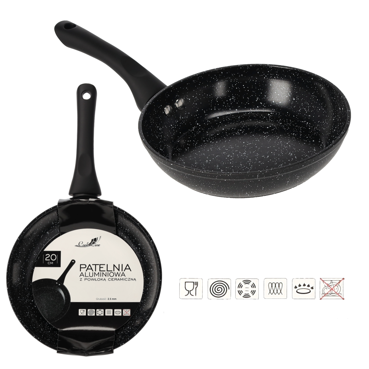 PATELNIA ALUMINIOWA 20 CM 2,5 MM Z POWŁOKĄ CERAMICZNĄ (INDUKCJA) *6382