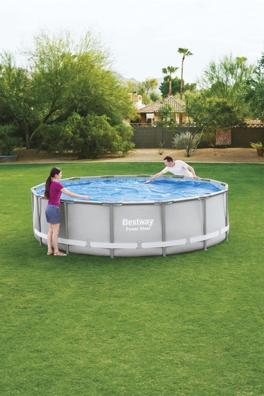 Ta uniwersalna pokrywa marki BESTWAY 🏊 dla basenów o średnicy 417 cm zadba o bezpieczeństwo twoich bliskich oraz czystość wody w Twoim basenie. W 100% zabezpiecza przed przedostaniem się do naszej wody zabrudzeń i gości takich jak liście, kamienie, owady, zwierzęta. Ponadto pokrywa posiada zabezpieczające liny i otwory, które nie dopuszczą do zbierania się na niej wody.