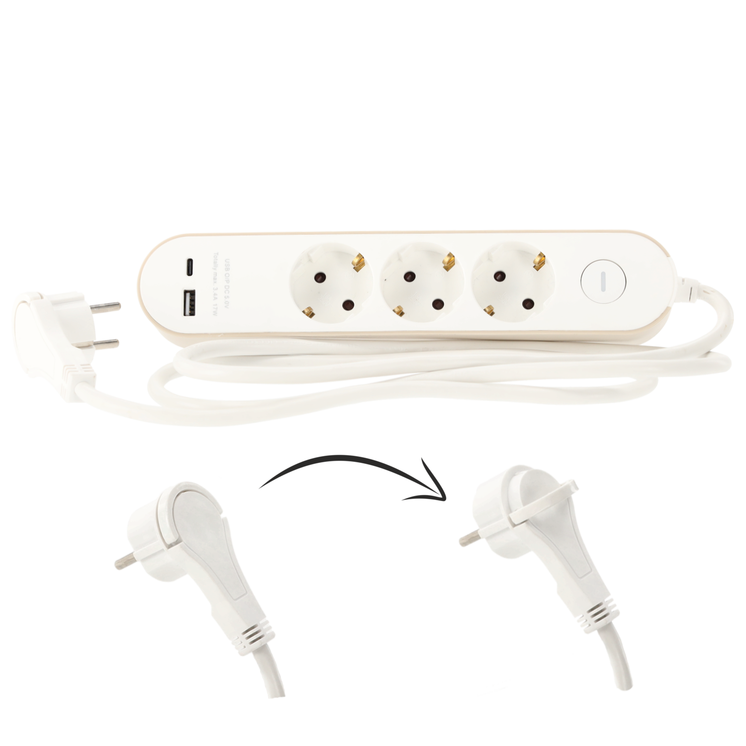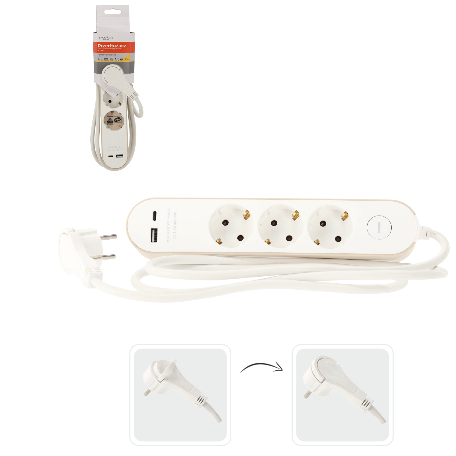 LISTWA ZASILAJĄCA 3 GNIAZDA ELEKTRYCZNE + 2 GNIAZDA USB