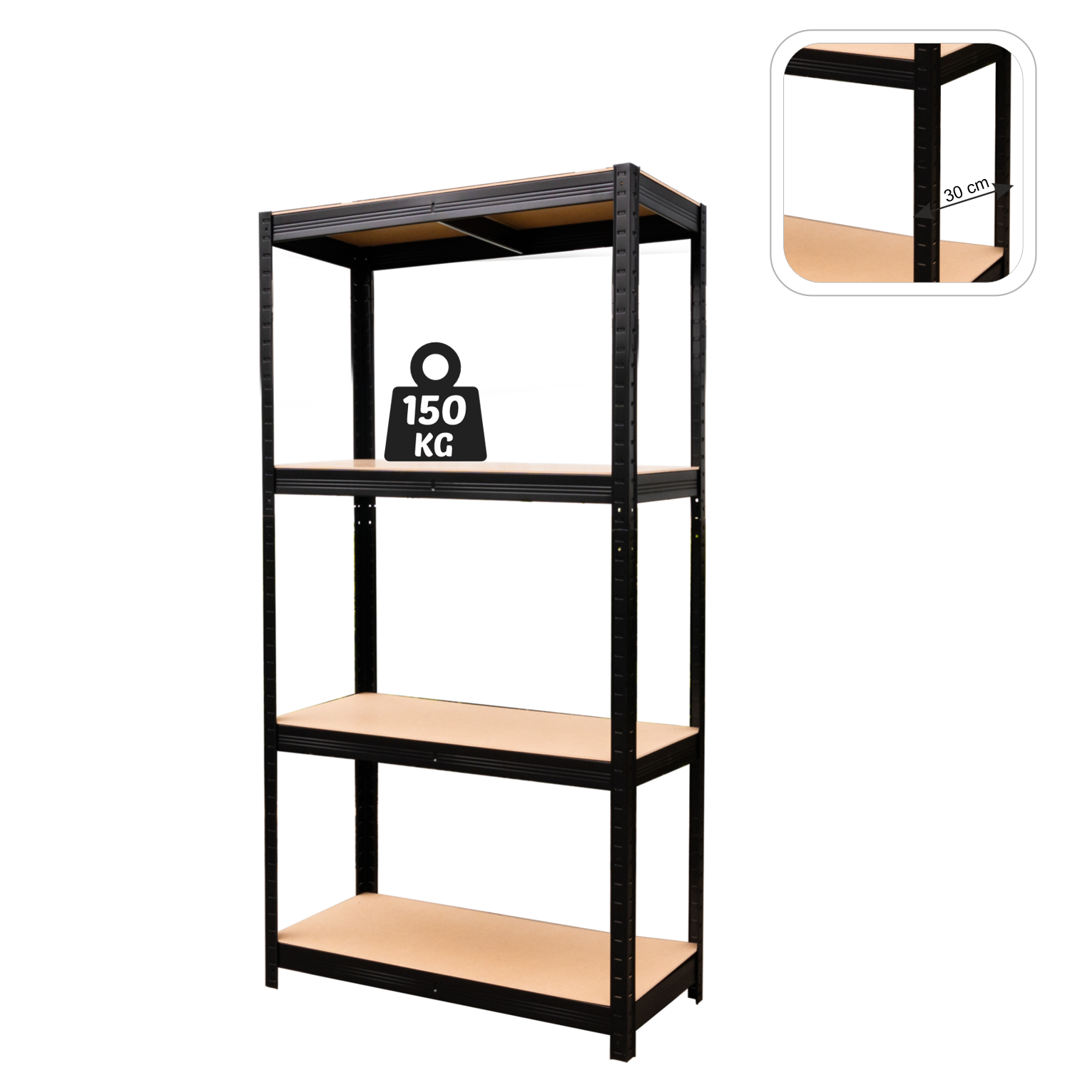 REGAŁ 4-POZIOMOWY 150 x 70 x 30 CM CZARNY UDŹWIG PÓŁKI: 150 KG *0582