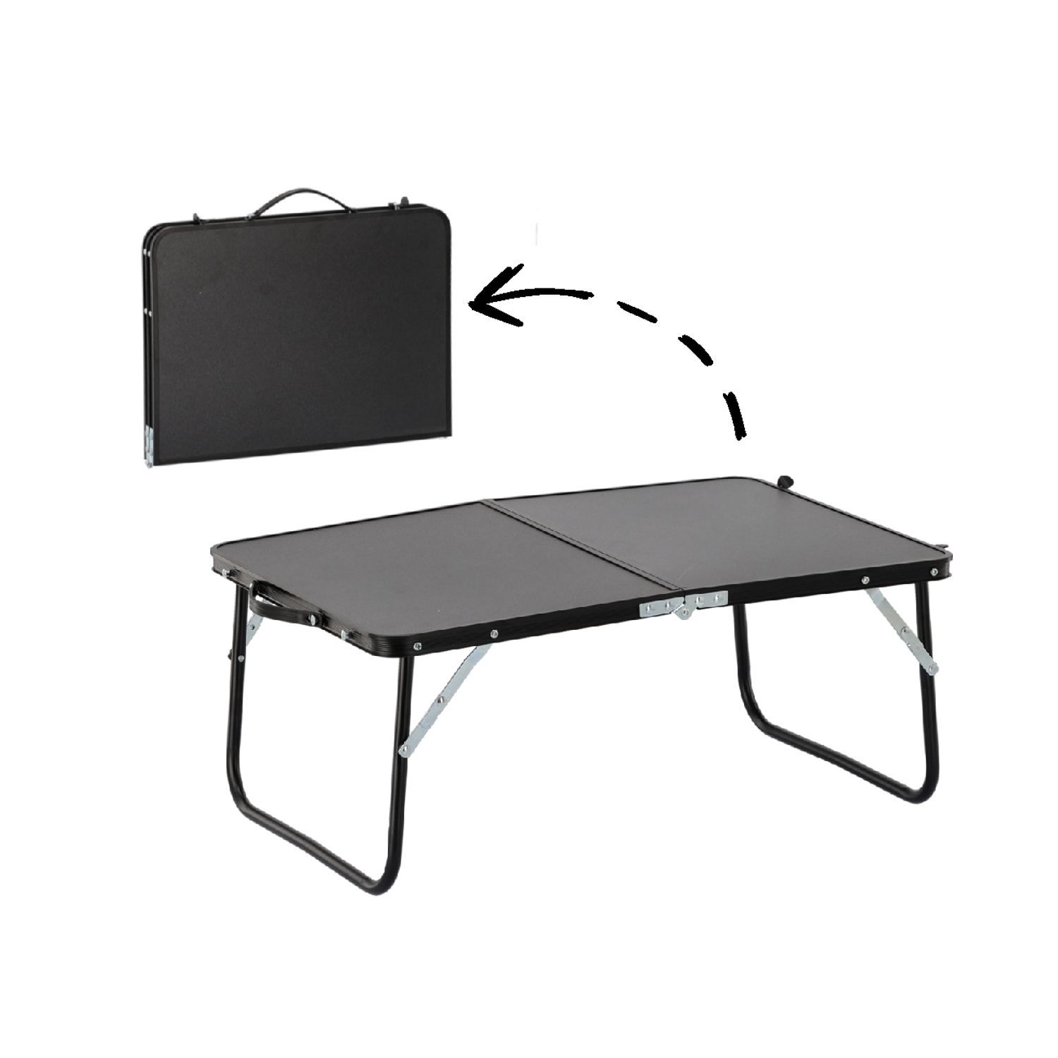 Po złożeniu ma tylko 4 cm grubości i waży zaledwie 1,2 kg, więc zabierzesz go wszędzie bez wysiłku. Solidny blat MDF i stalowe nóżki zapewniają stabilność i trwałość nawet na nierównym podłożu.