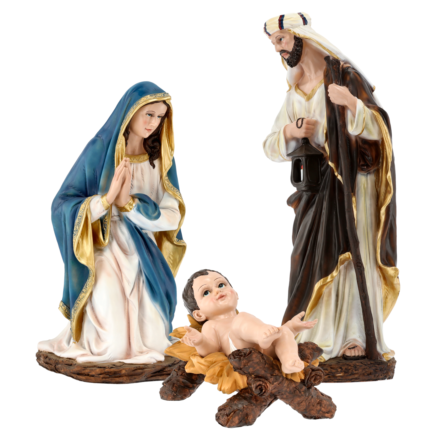 🌟 Piękny zestaw figur przedstawiających Świętą Rodzinę to wyjątkowa dekoracja, która wprowadzi do Twojego domu niepowtarzalny klimat Bożego Narodzenia 🎄✨. Doskonale odwzorowane postacie Maryi, Józefa i Dzieciątka Jezus zachwycają realizmem, ciepłem barw oraz dbałością o każdy szczegół 💫.