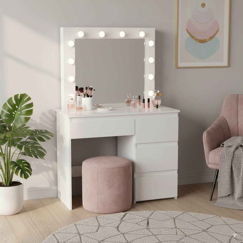 Toaletka Kosmetyczna to połączenie elegancji i praktyczności. Stworzona dla kobiet, które cenią sobie styl, funkcjonalność i wygodę. Dodaj swojemu wnętrzu odrobinę hollywoodzkiego blasku i ciesz się przestrzenią, która sprawi, że codzienna rutyna zamieni się w wyjątkowy rytuał 🌹💎.