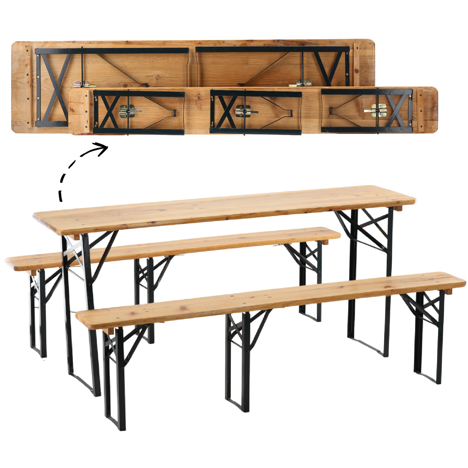 - Składane nogi stołu i ławek – montaż/demontaż w kilka sekund