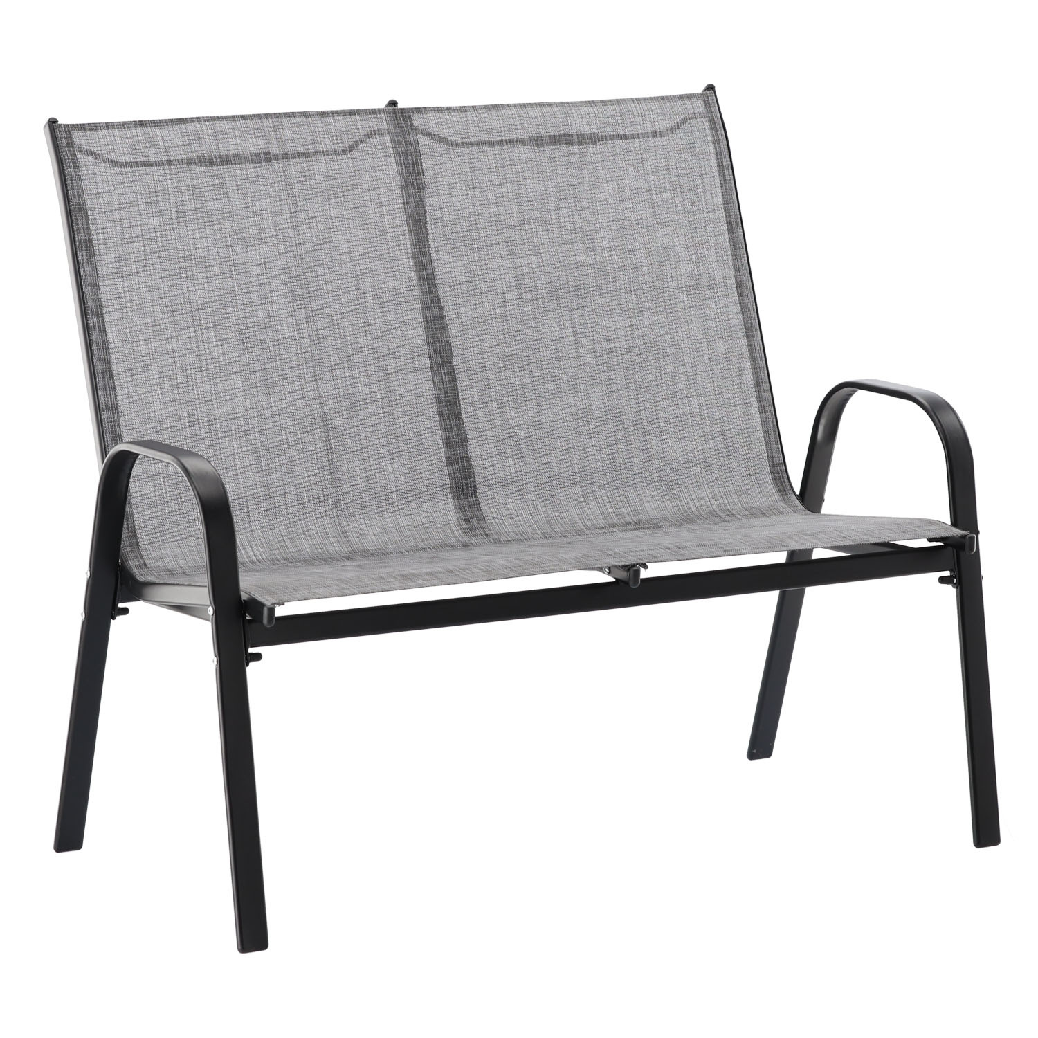 Ławka o wymiarach 66,5x114x78,5 cm jest idealnym uzupełnieniem zestawu. Podobnie jak krzesła, posiada stalową ramę malowaną proszkowo oraz pokrycie z textilene, co czyni ją nie tylko komfortową, ale także bardzo stabilną. Ławka może pomieścić do dwóch osób, stanowiąc doskonałe miejsce na relaks w plenerze.